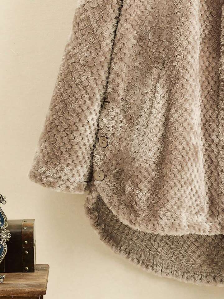 Plus Flannel Single Breasted High Low Hem Hooded Coat