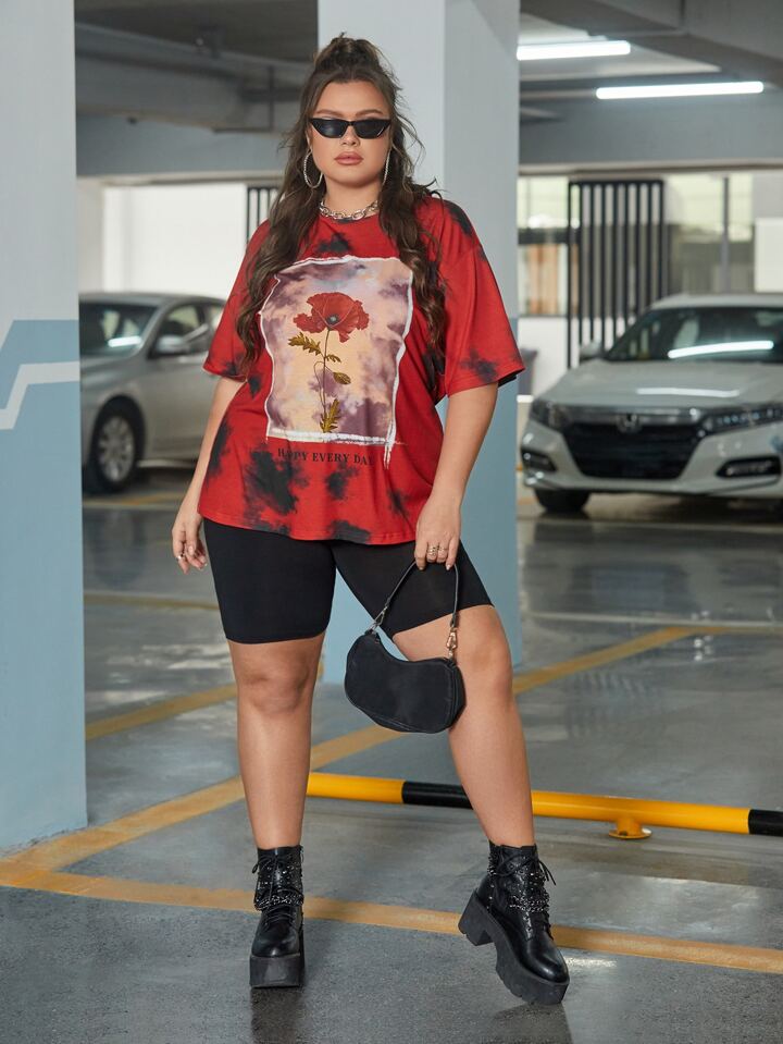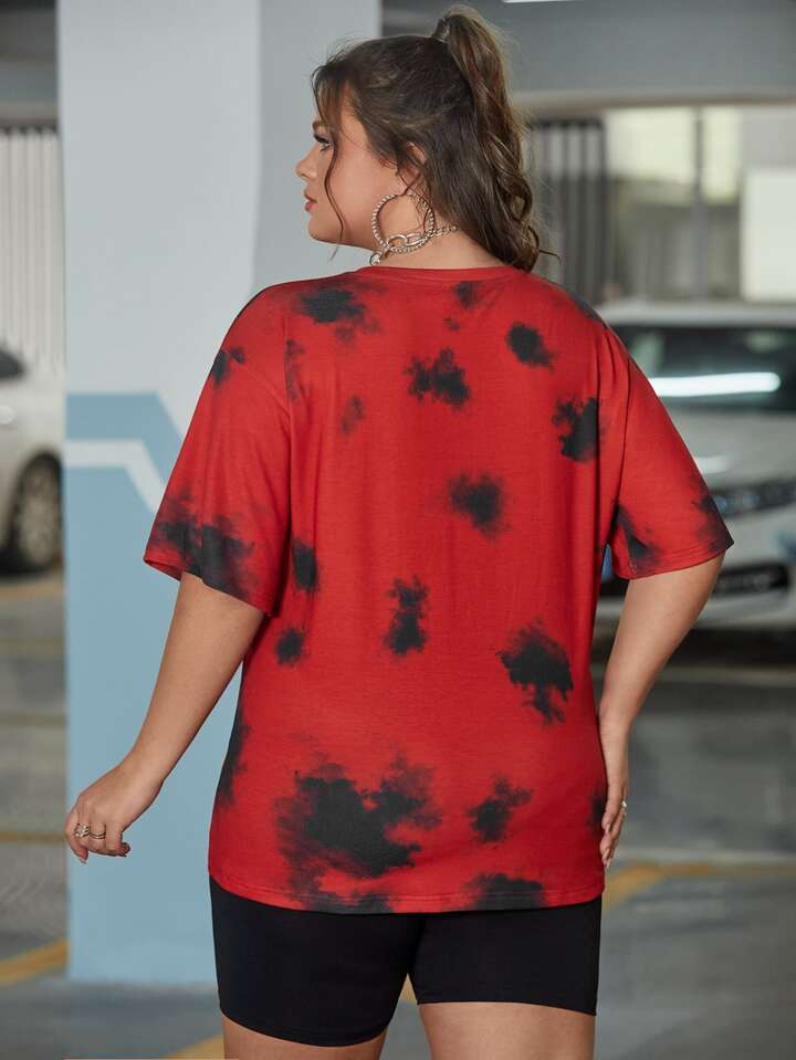 Plus Floral & Slogan Graphic Tie Dye Drop Shoulder Tee