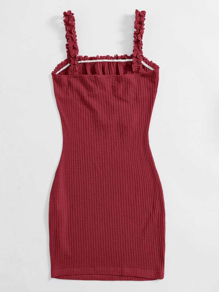 Plus Frill Detail Knot Front Ruched Bust Waffle Knit Dress