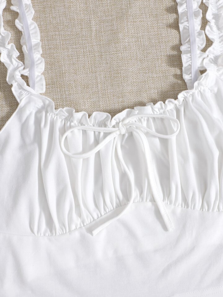 Plus Frill Trim Tie Front Ruched Bust Crop Top