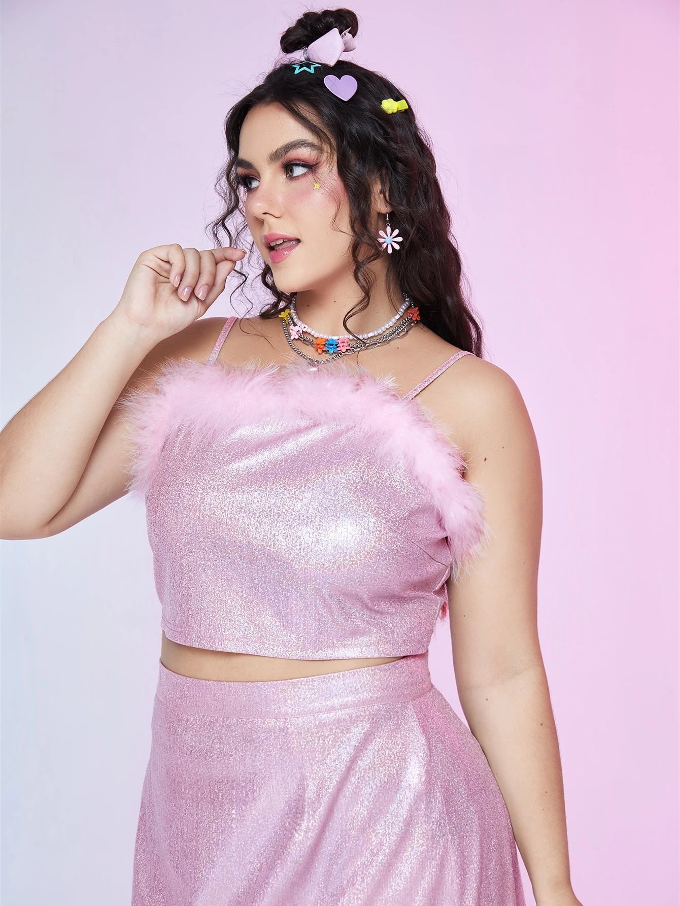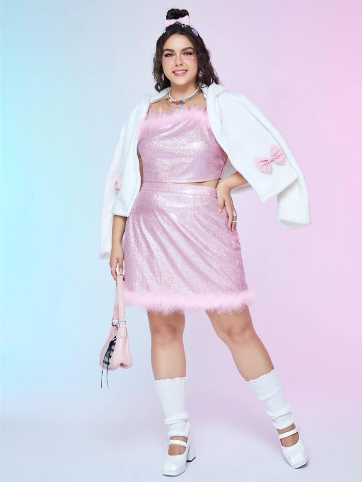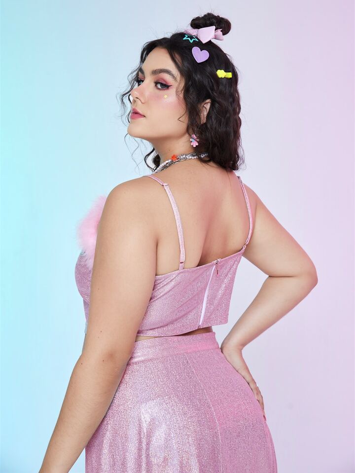 Plus Fuzzy Trim Metallic Cami Top