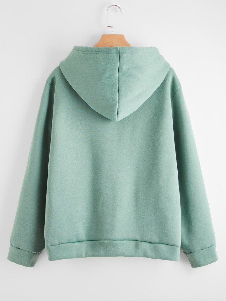 Plus Graphic Print Thermal Lined Kangaroo Pocket Hoodie