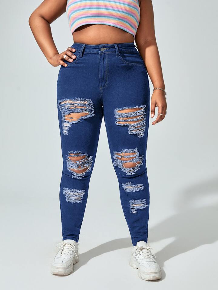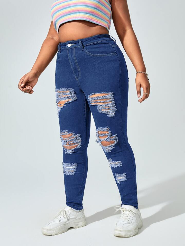 Plus High Waist Ripped Frayed Cut Out Skinny Jeans