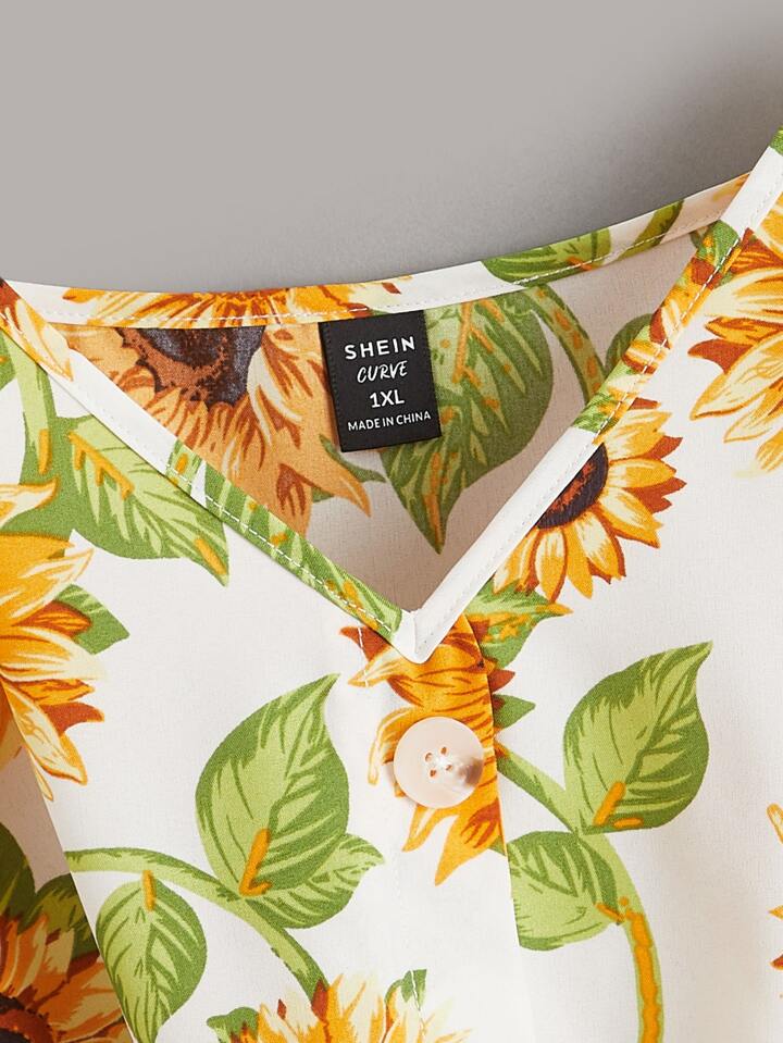 Plus Knot Hem Sunflower Print Crop Cami Top