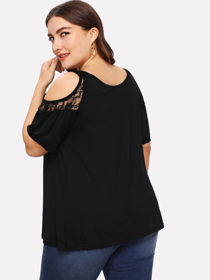 Plus Lace Insert Open Shoulder Tee
