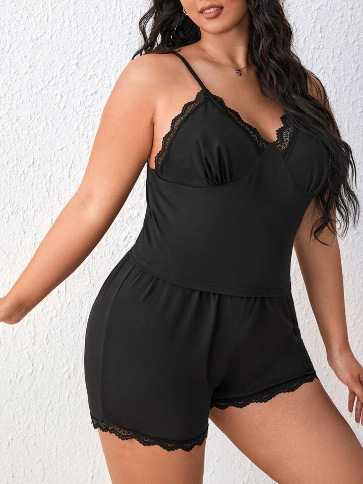 Plus Lace Trim Cami Top & Shorts PJ Set