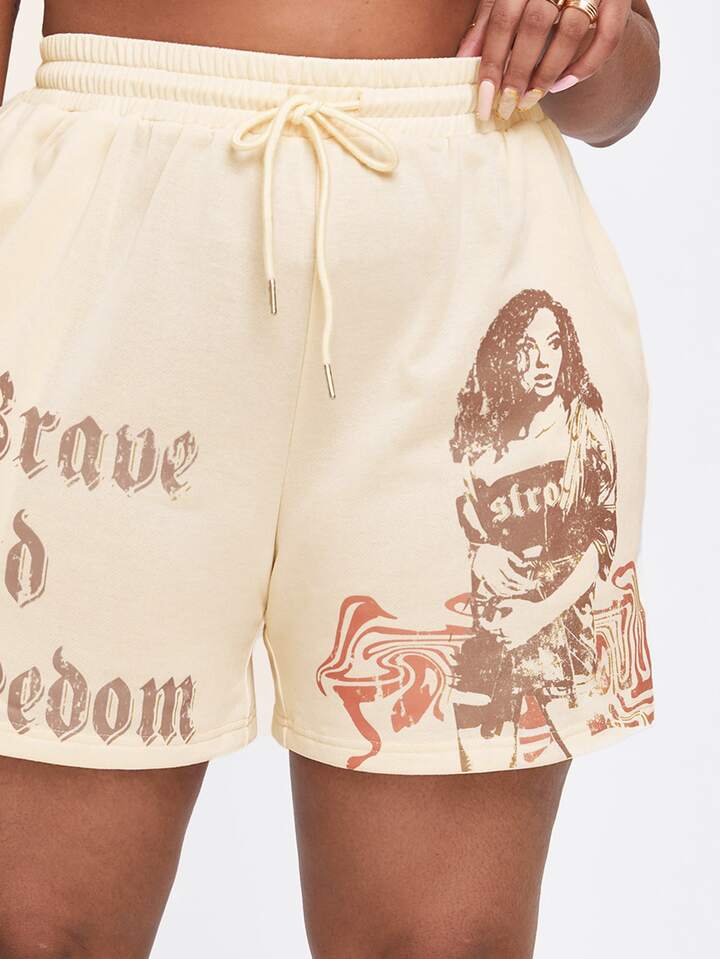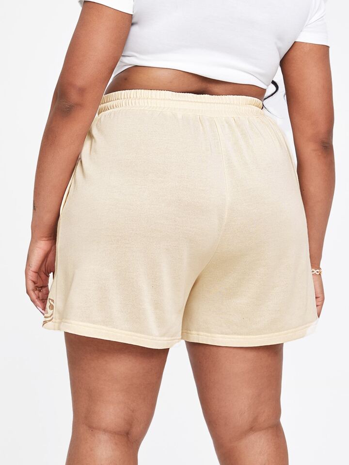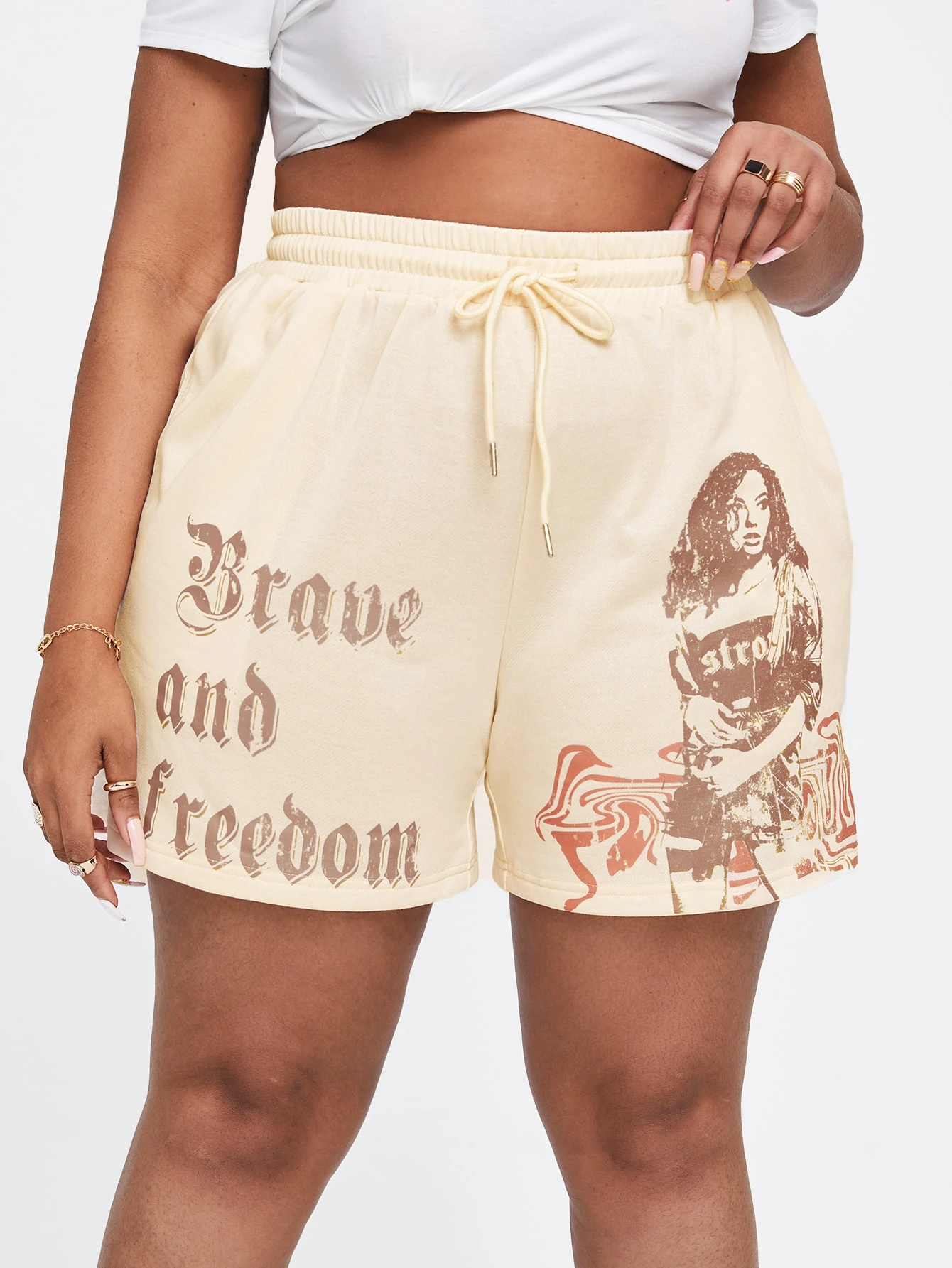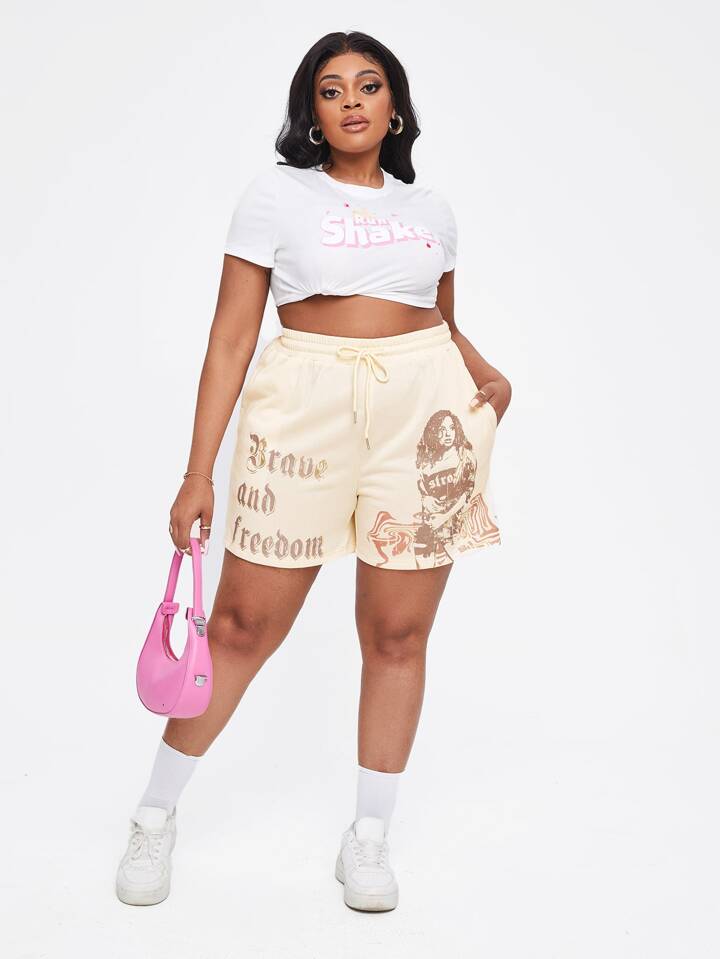 Plus Letter & Figure Graphic Drawstring Waist Shorts