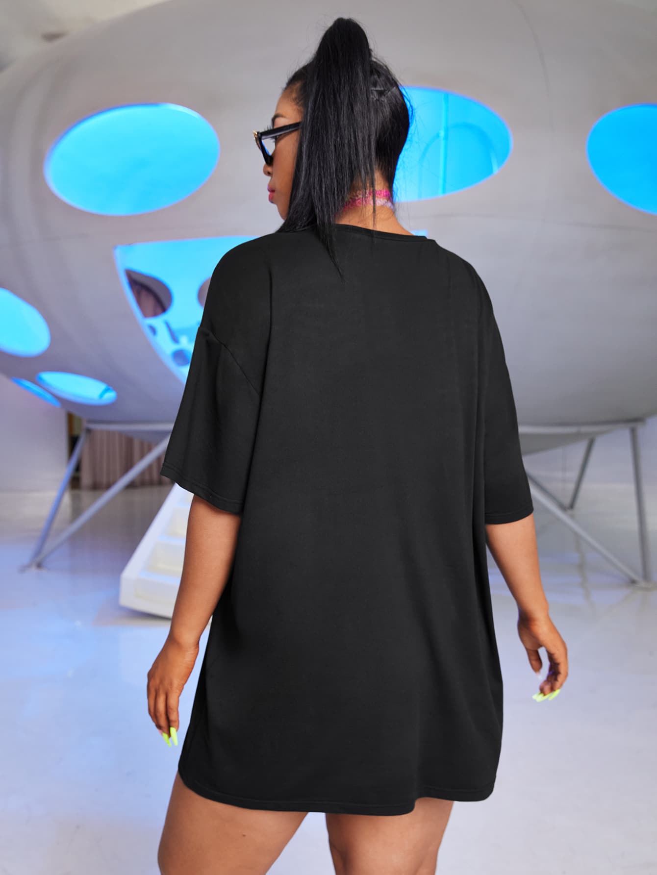 Plus Letter Graphic Drop Shoulder Longline Tee