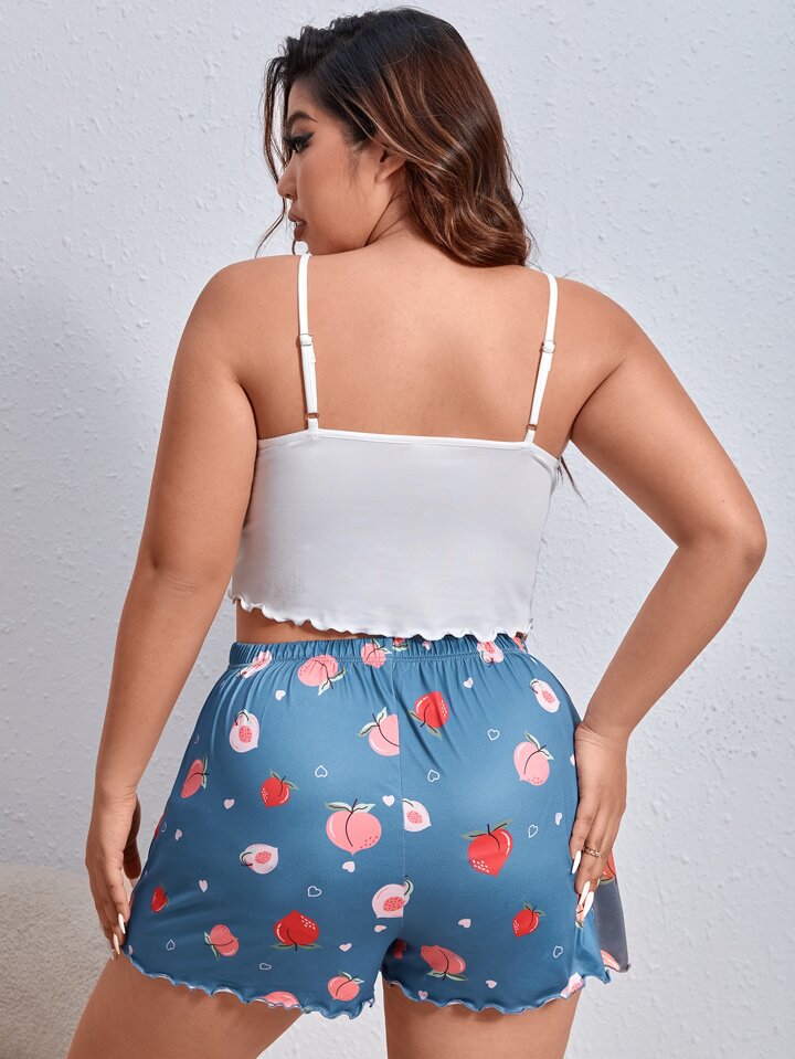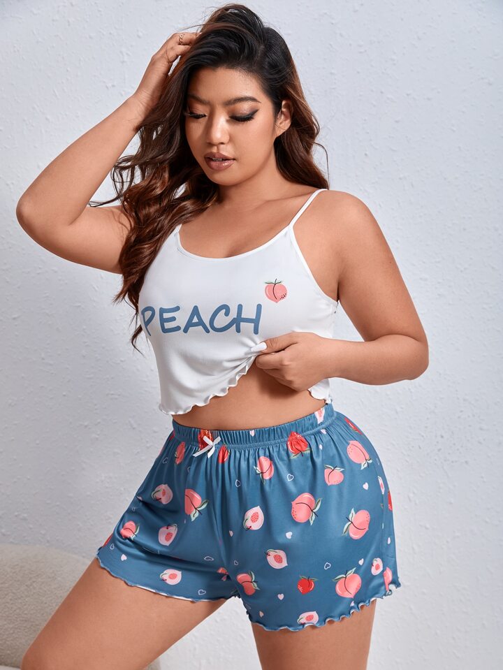 Plus Letter & Peach Print Lettuce Trim Bow Front PJ Set