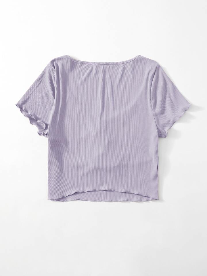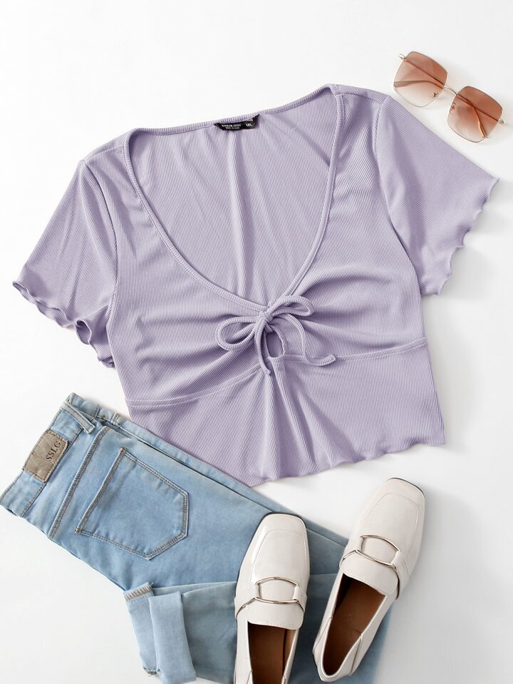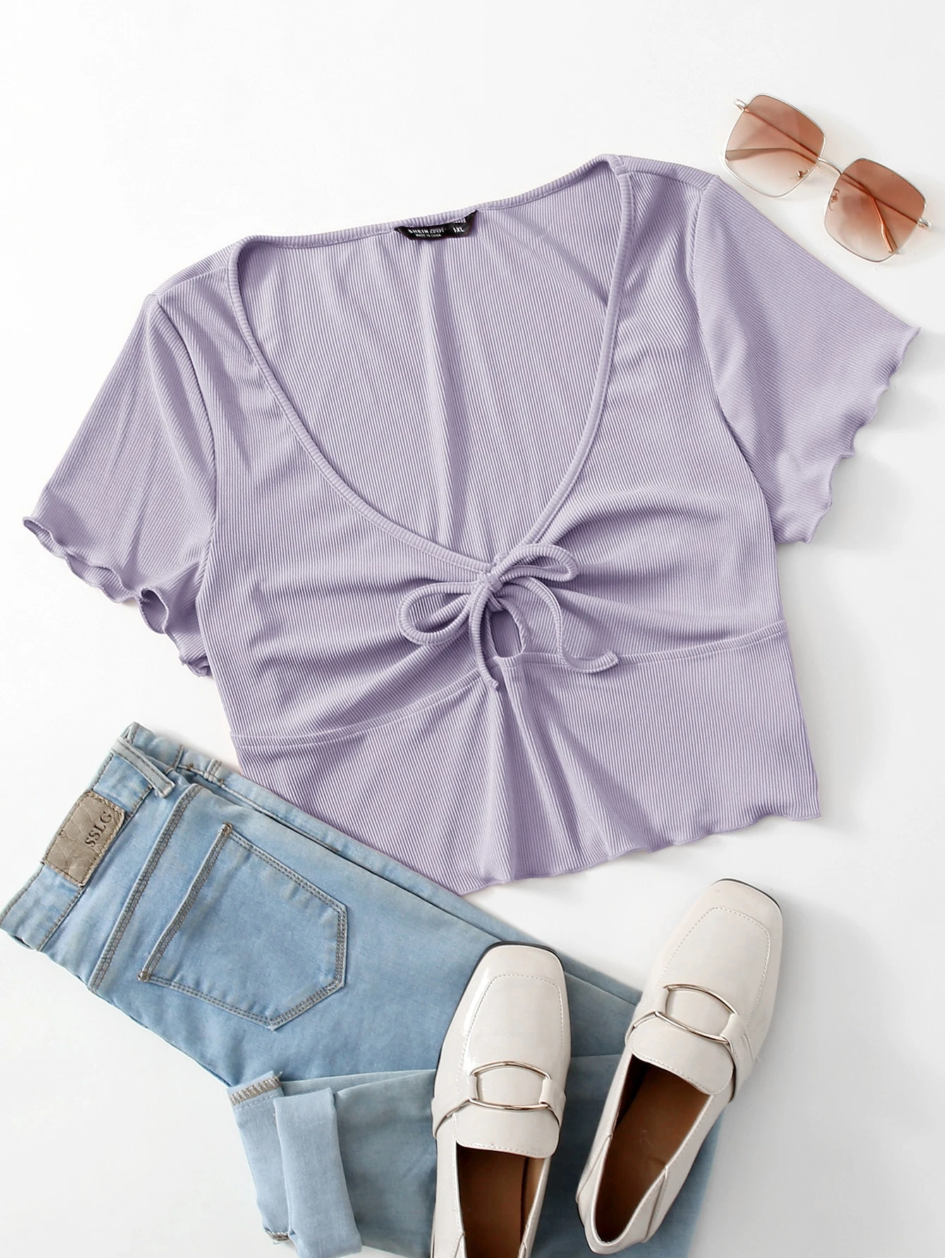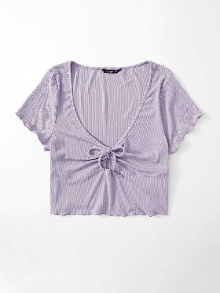 Plus Lettuce Trim Cut Out Knot Front Rib-knit Top