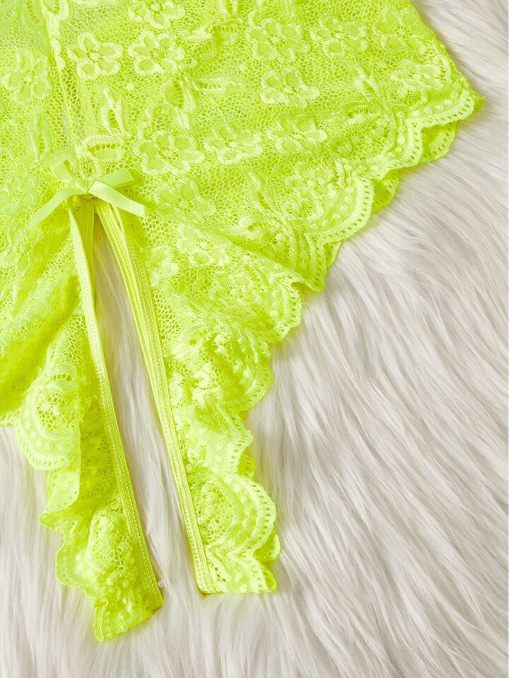 Plus Neon Lime Floral Lace Scallop Trim Crotchless Teddy Bodysuit