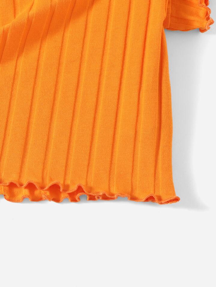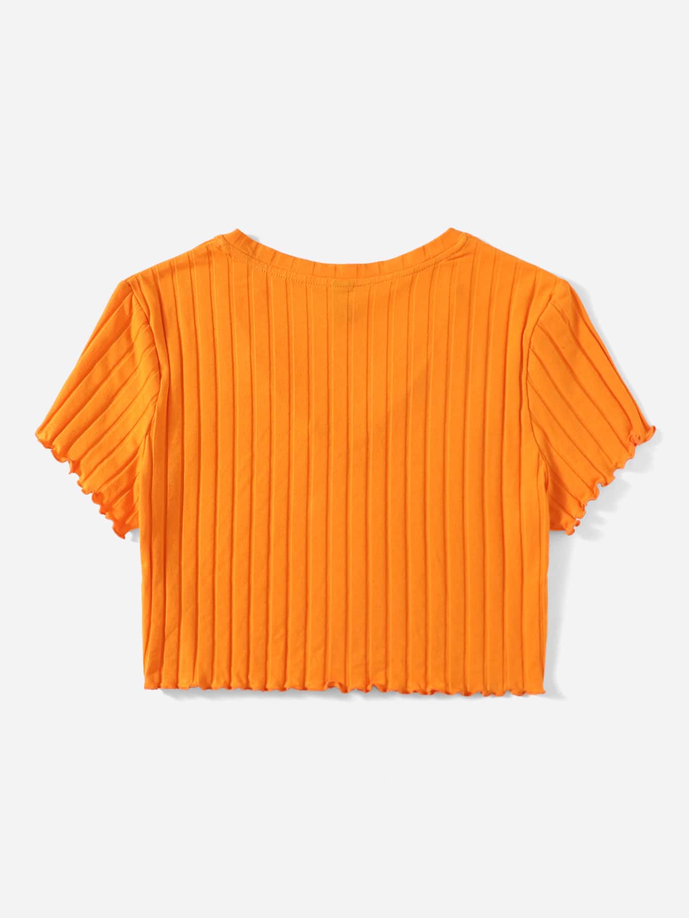 Plus Neon Orange V-neck Lettuce Trim Rib-knit Tee