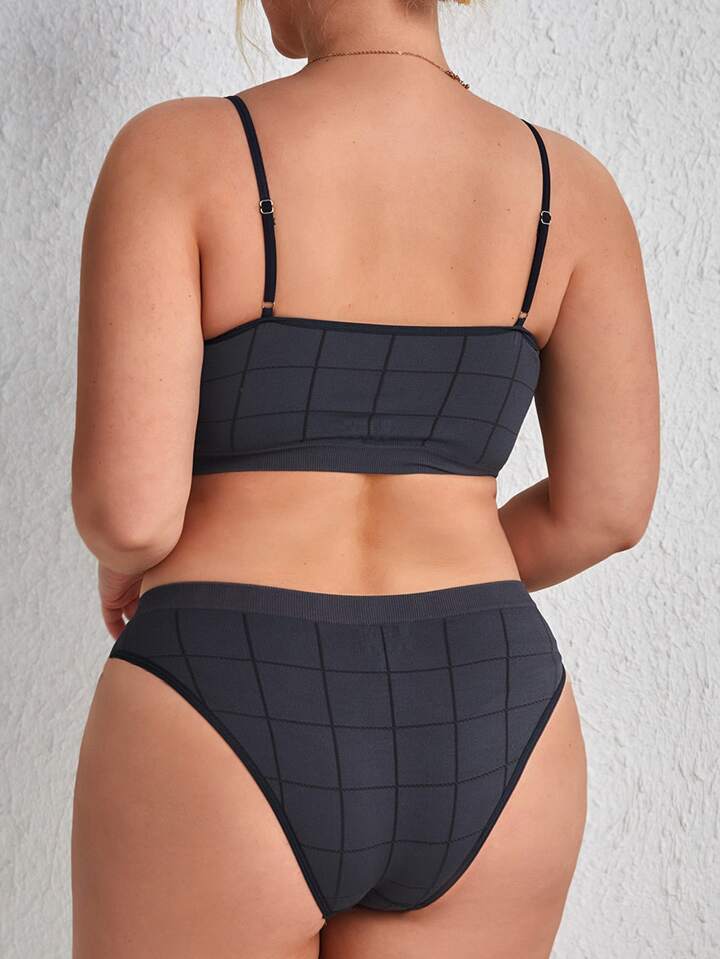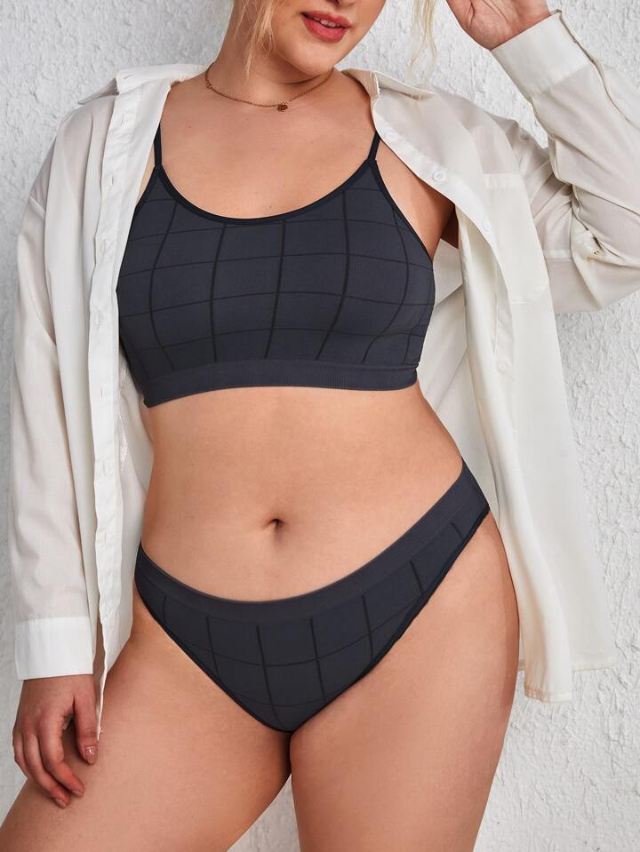 Plus Plaid Lingerie Set