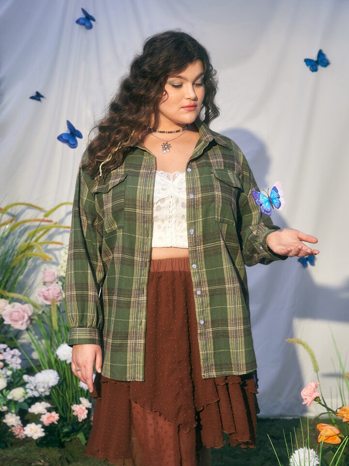 Plus Plaid Print Drop Shoulder Flap Pocket Shirt