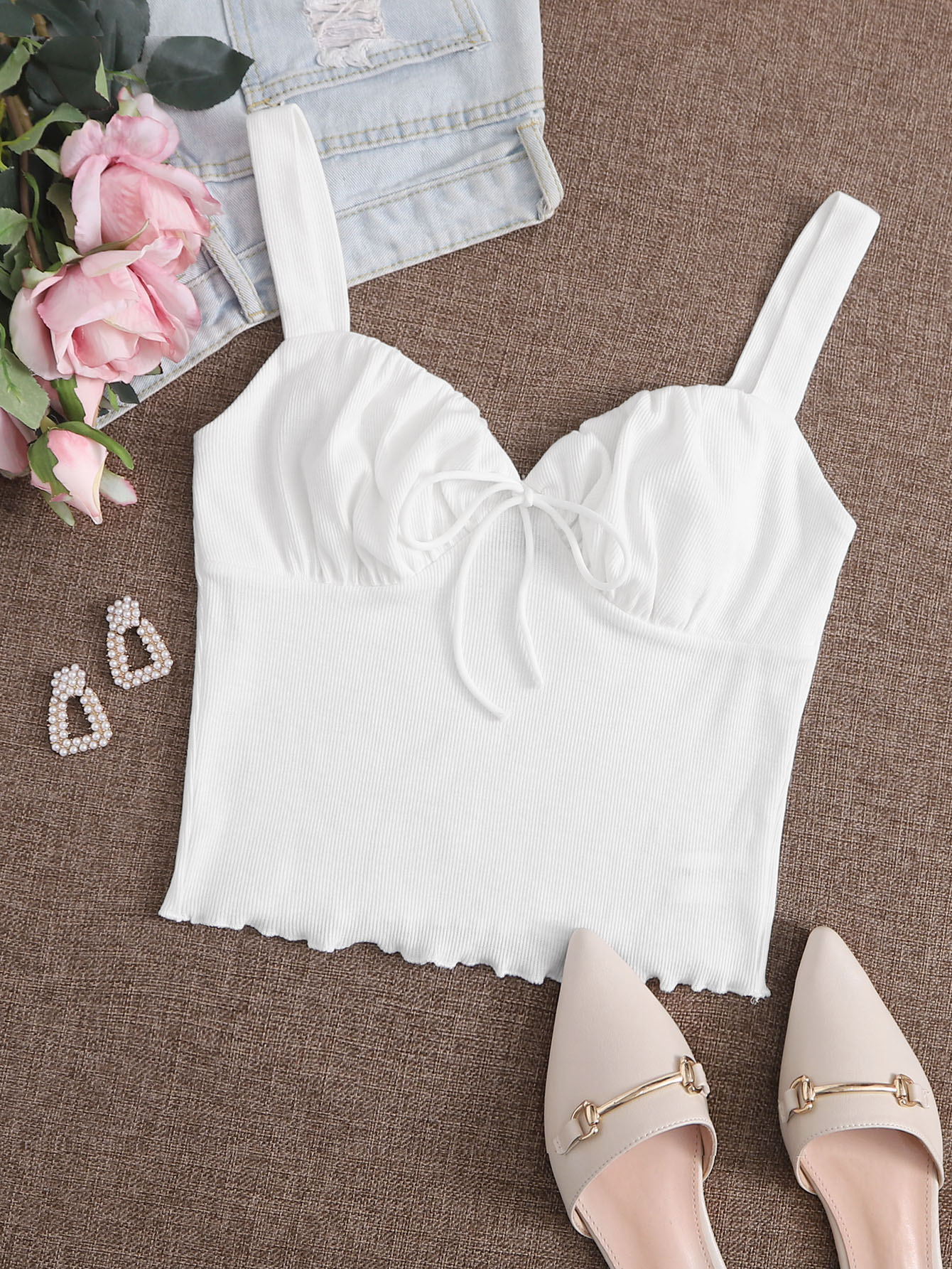 Plus Ruched Bodice Lettuce-Edge Cami Top