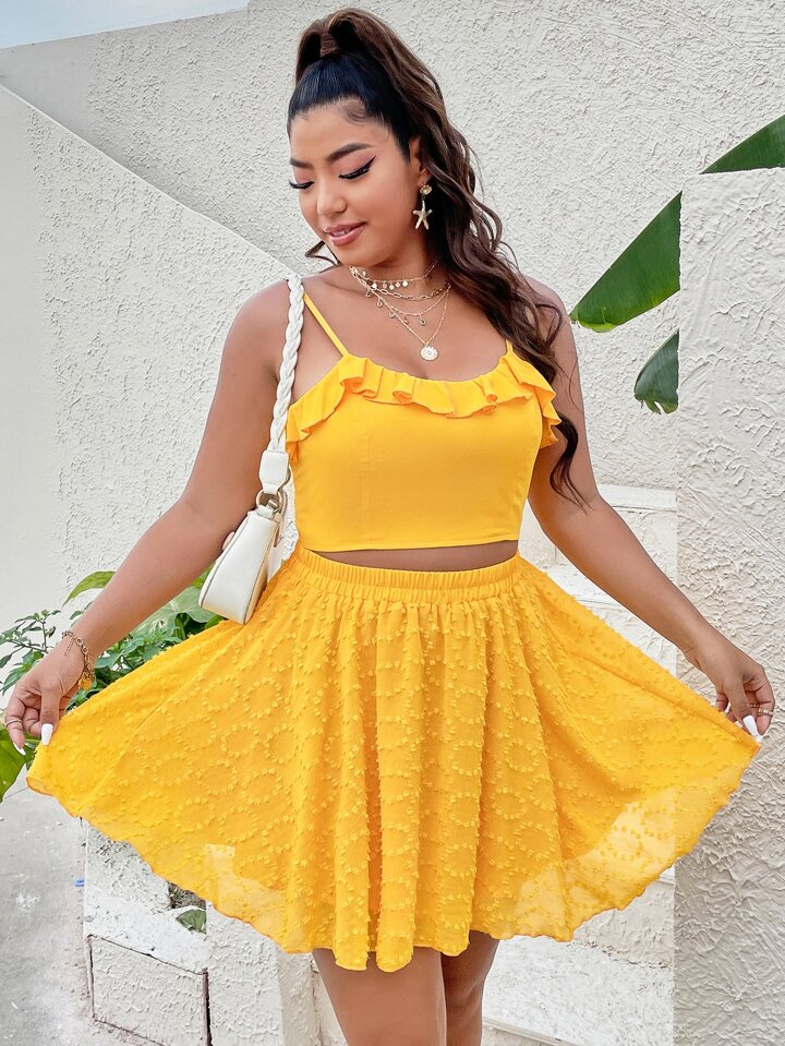Plus Ruffle Trim Cami Top & Swiss Dot Skirt