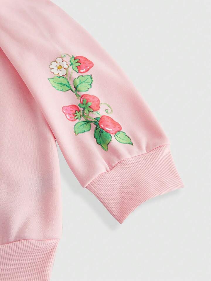 Plus Size Casual Strawberry Print Hooded Sweatshirt