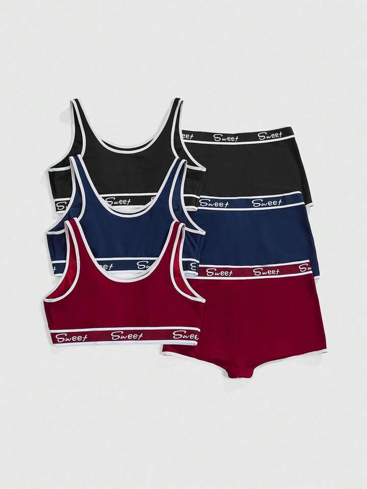 Plus Size Contrast Trim Letter Print Bra And Panty Set