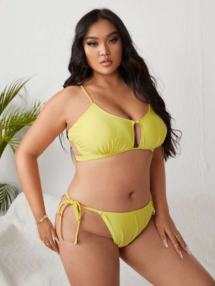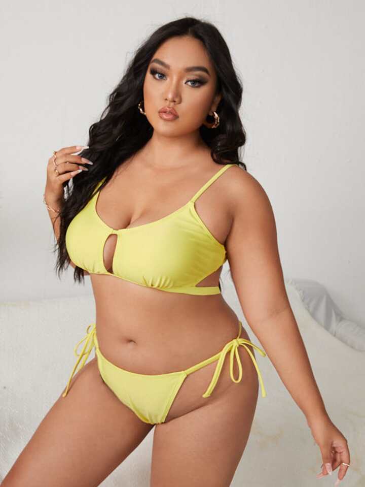 Plus Size Cut-Out Tie Side Bikini Set Summer Beach