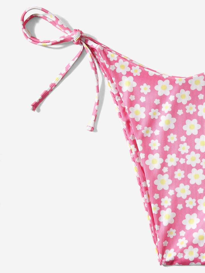 Plus Size Floral Print Rib Halter Bikini Set Summer Beach