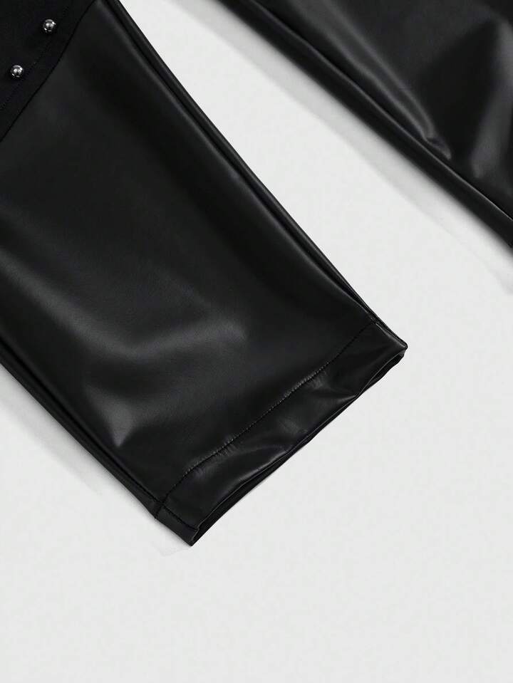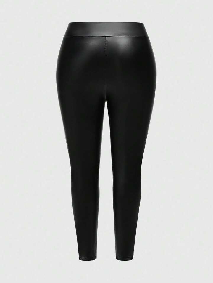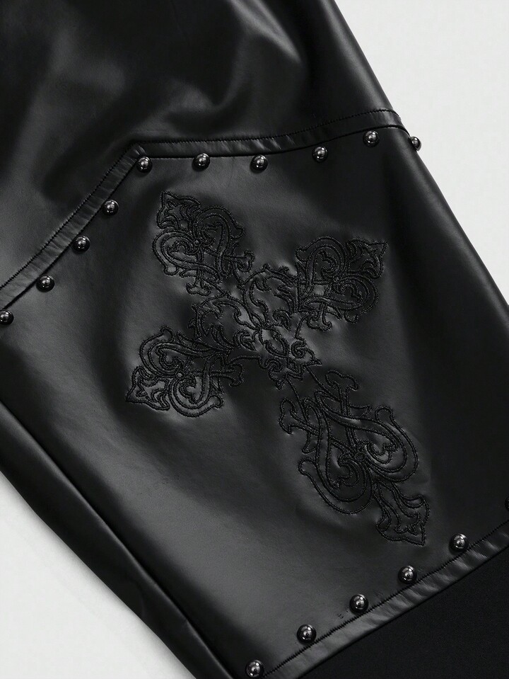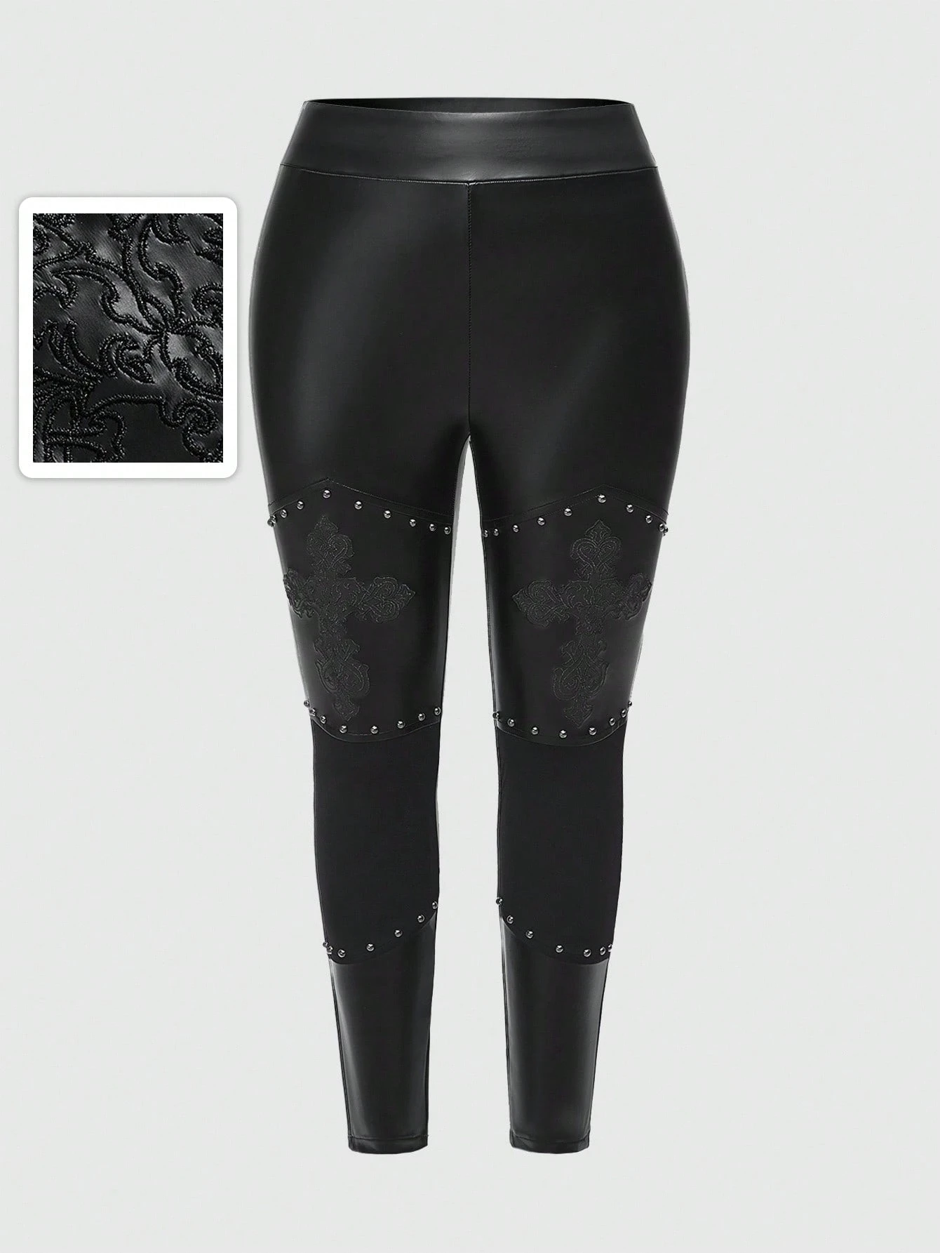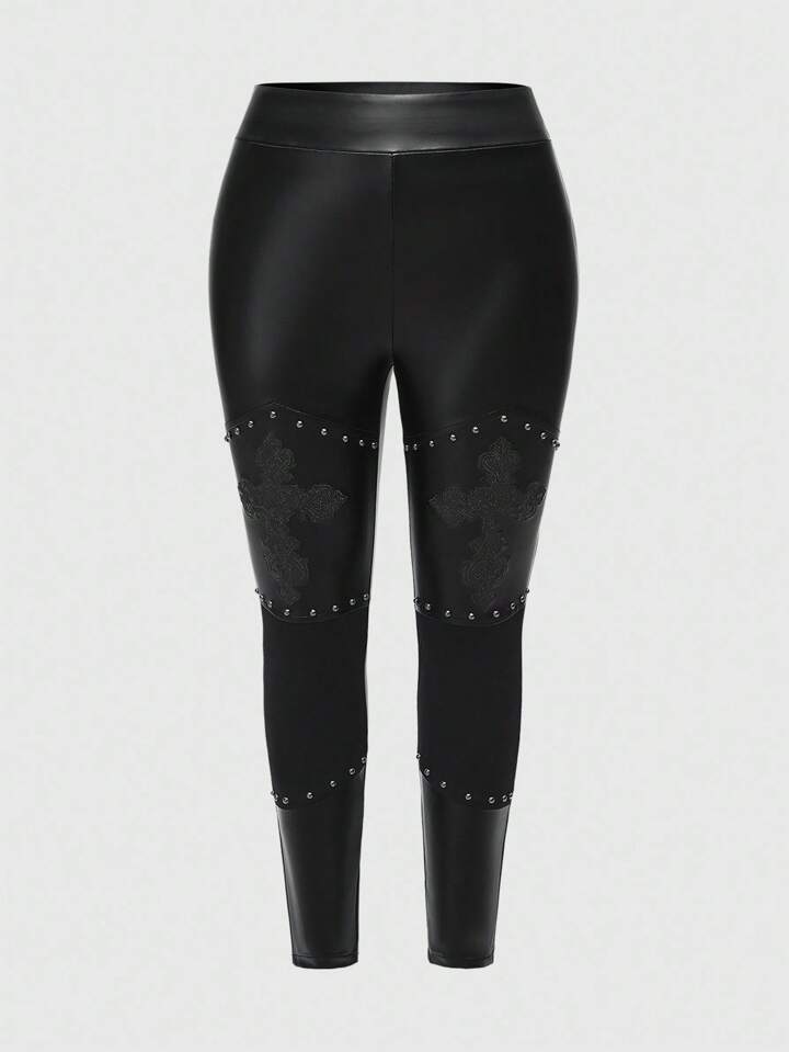 Plus Size Gothic Cross Embroidered Faux Leather Leggings