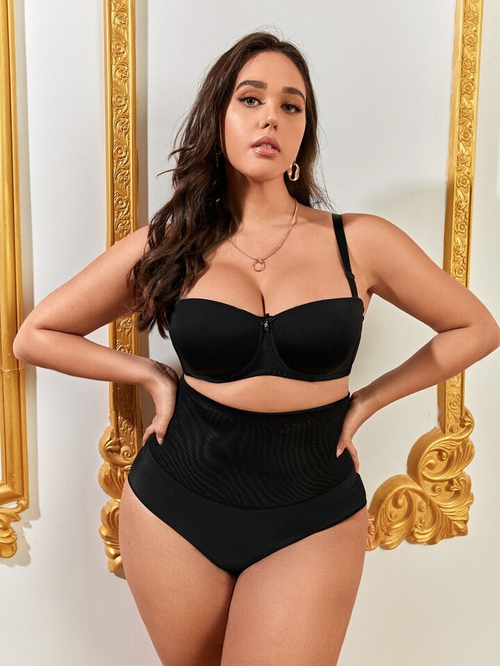 Plus Size High Waisted Black Casual Panties For Women With High Stretch Fabric