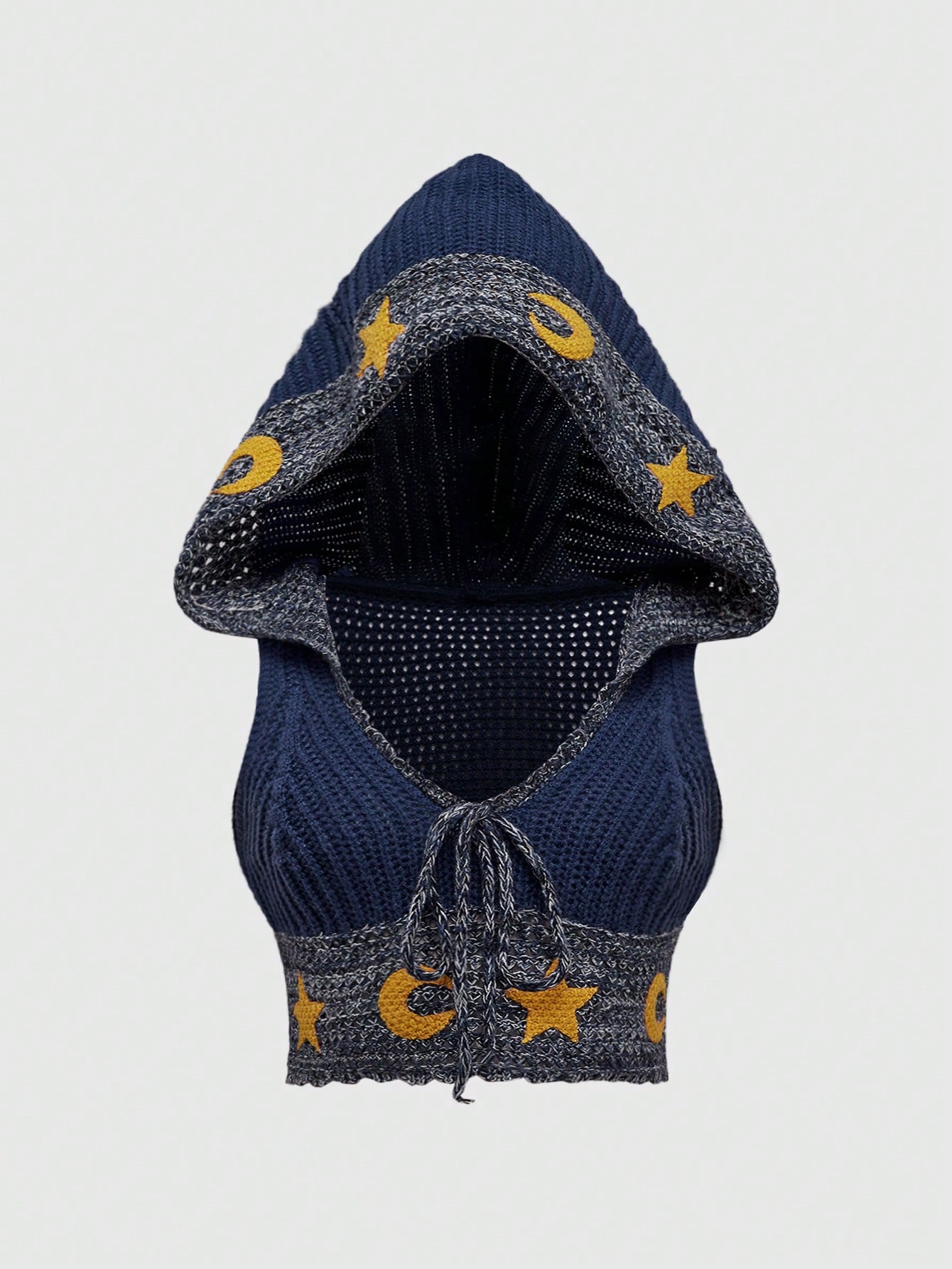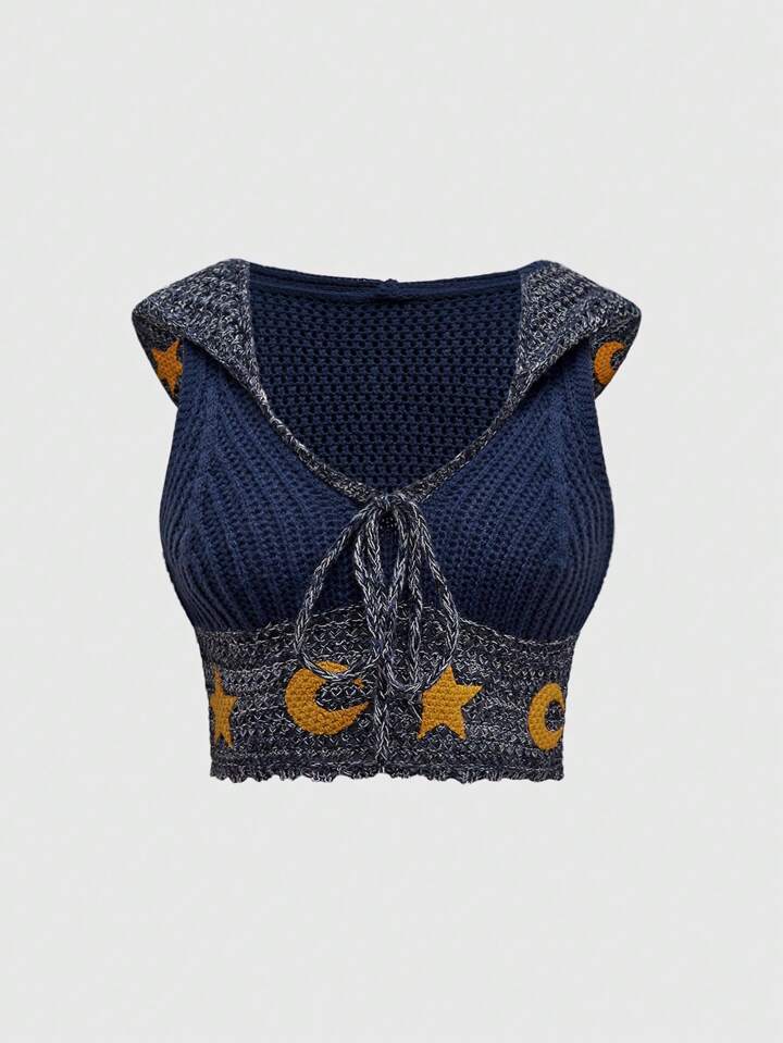 Plus Size Hippie Bohemian Sun & Moon Pattern Hooded Knit Sweater