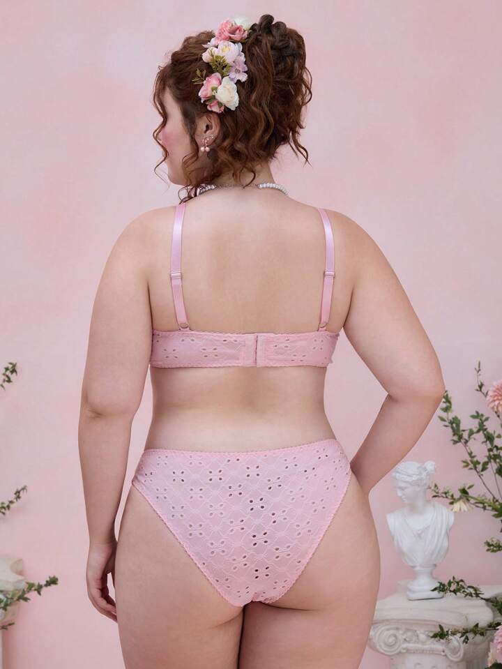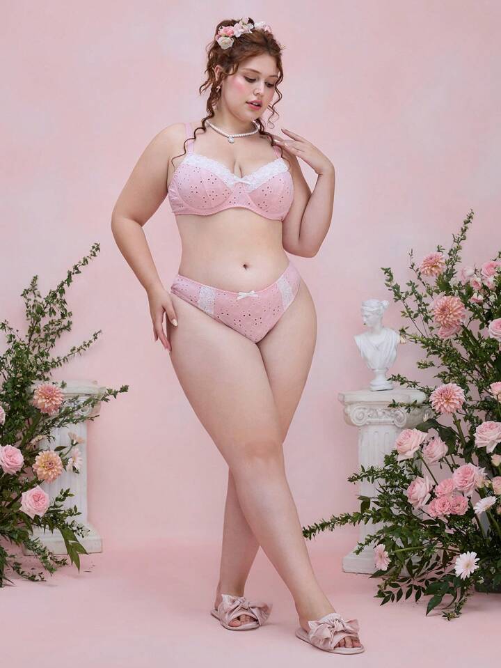 Plus Size Sweet Purity Palace Style Handmade Knitted Hollow-Out Lace Patchwork Lingerie Bralette Lingerie Bra Set, Kawaii