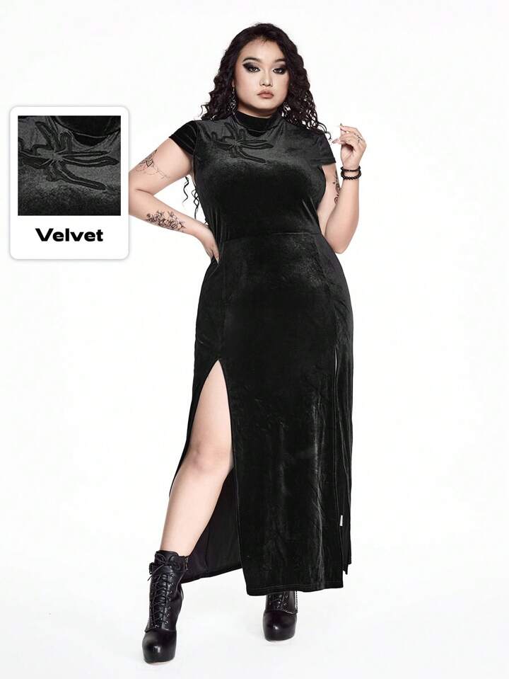 Plus Size Vintage Sexy Velvet Spider Hollow Out Gothic High Split Dress