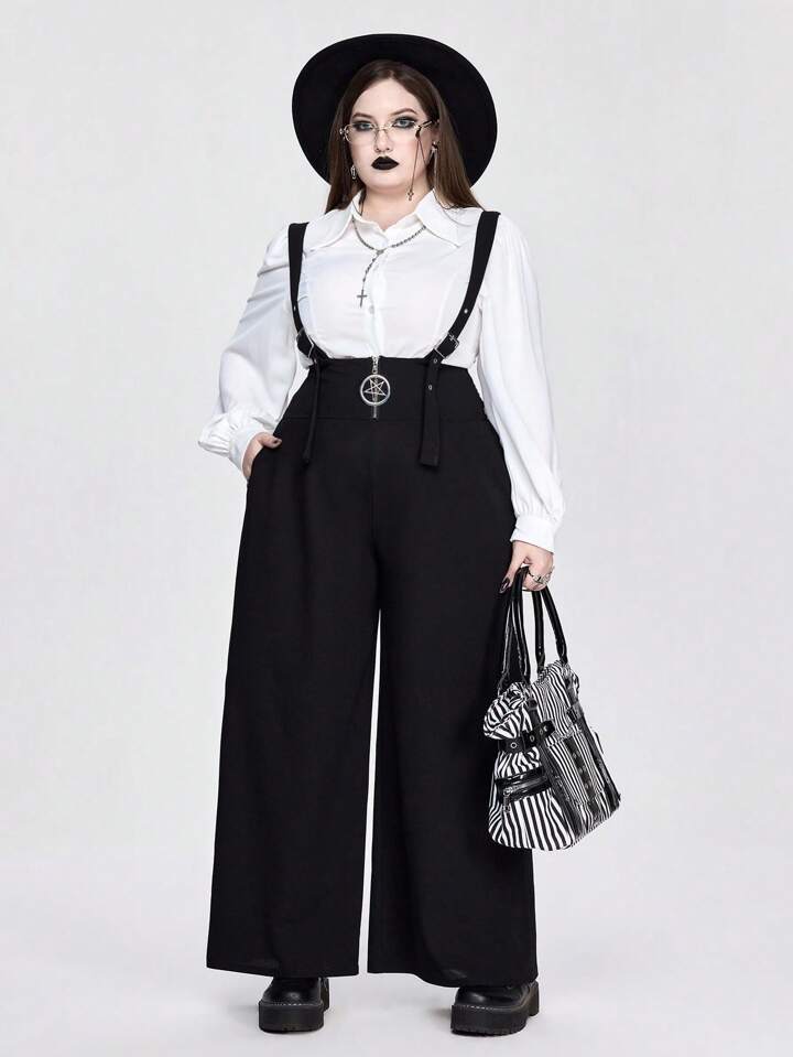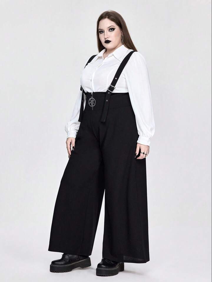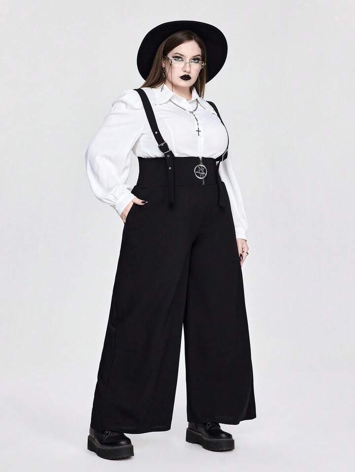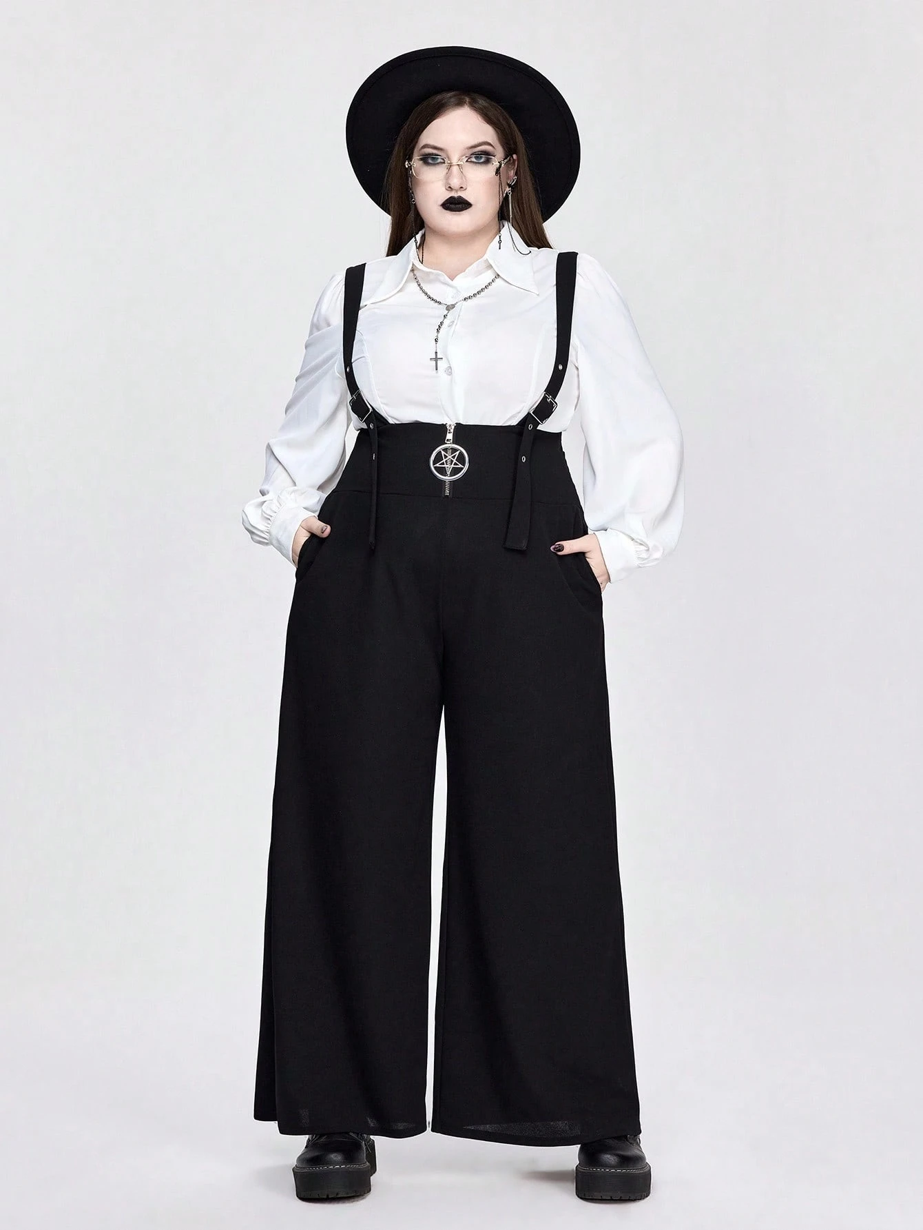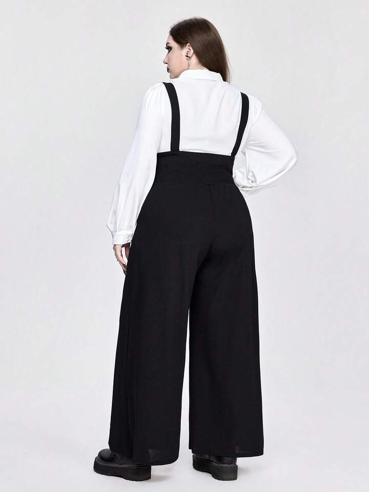 Plus Size Women Gothic Elegant Commuter Wide Leg Jumpsuit With Pockets, Suitable For All Seasons, Fall Back To School, Halloween