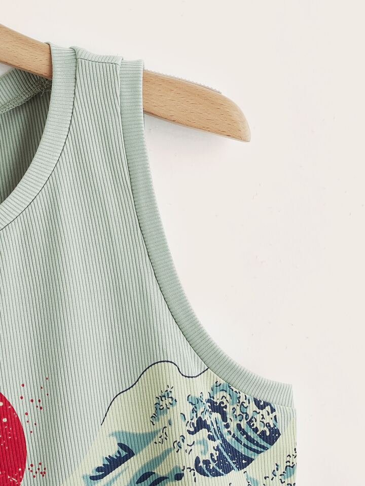 Plus Size Women Round Neck Sleeveless Short Printed Casual Vacation Home Tank Top Graphic Tees Women Tops