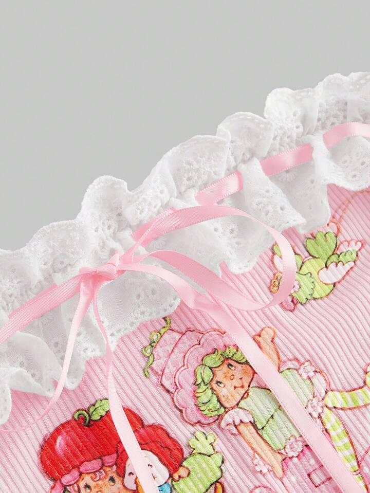 Plus Size Women's Cute & Sweet Cartoon Print Tube Top, Summer