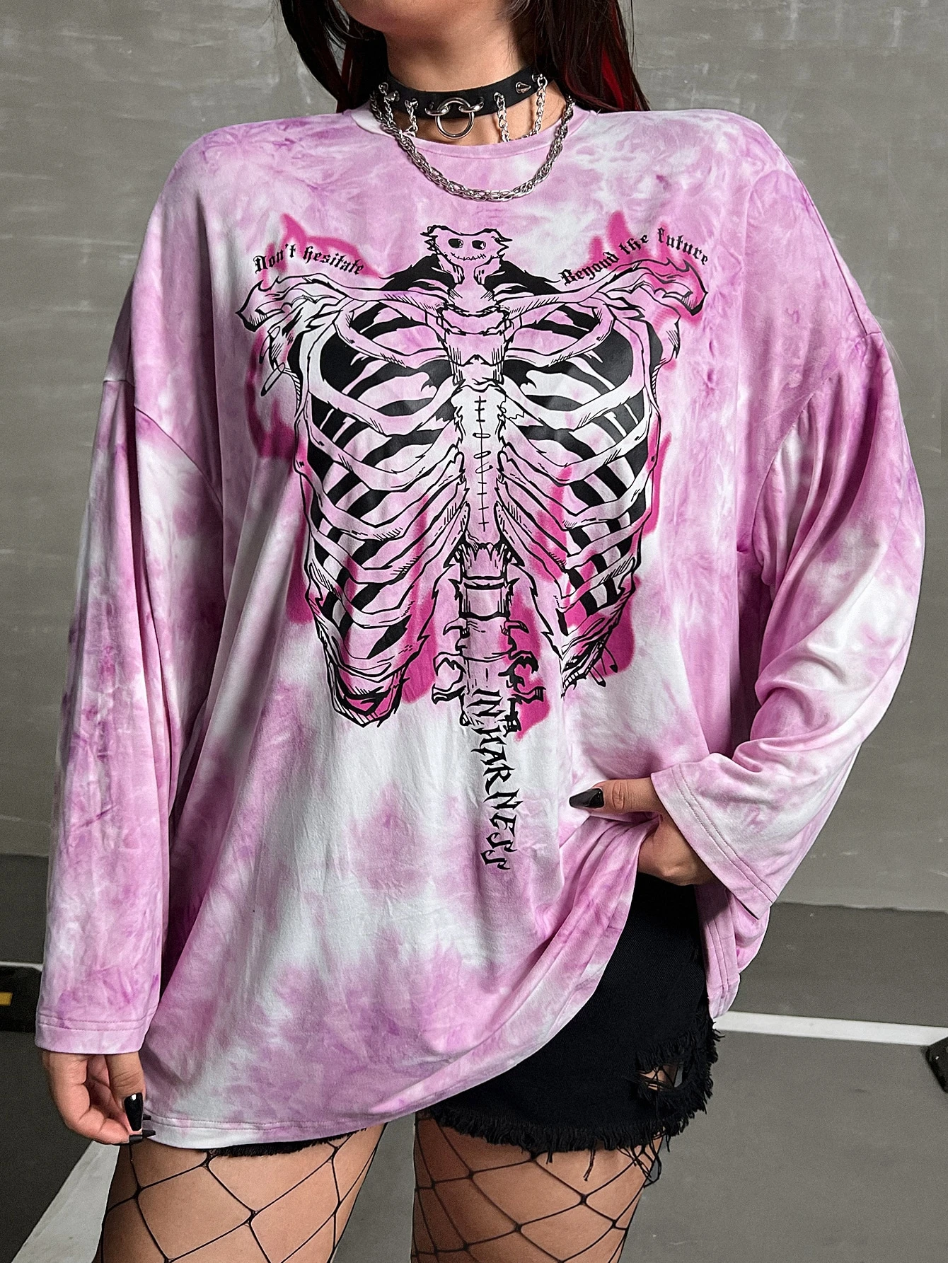 Plus Skeleton & Slogan Graphic Tie Dye Drop Shoulder Tee