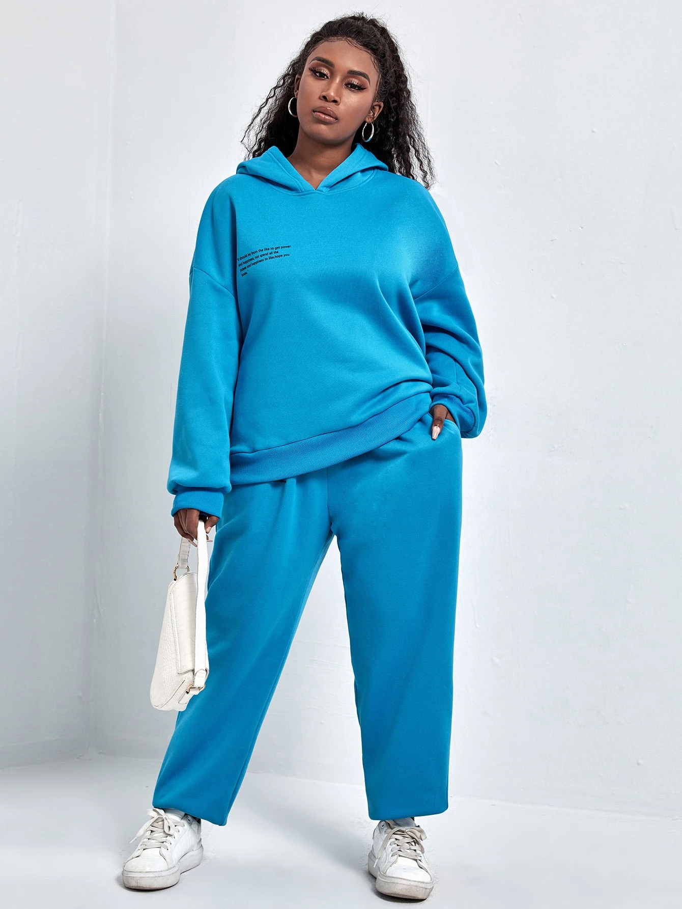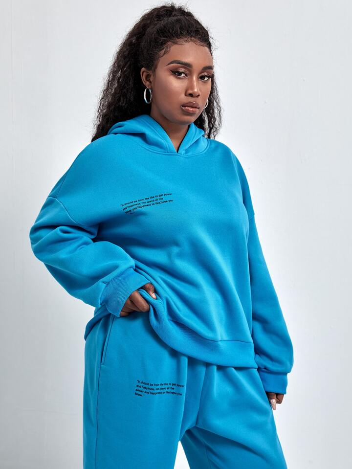 Plus Slogan Graphic Drop Shoulder Hoodie With Joggers