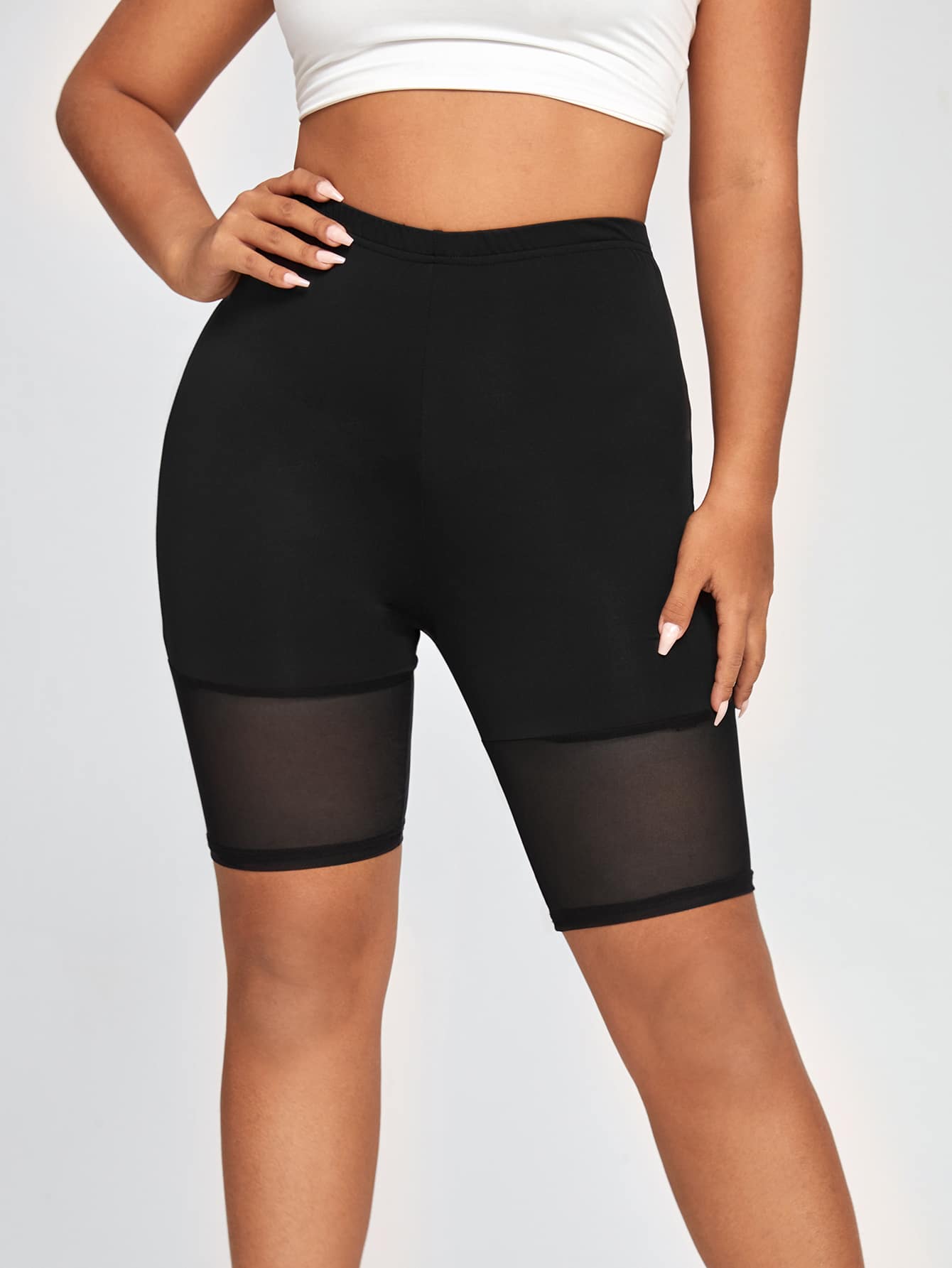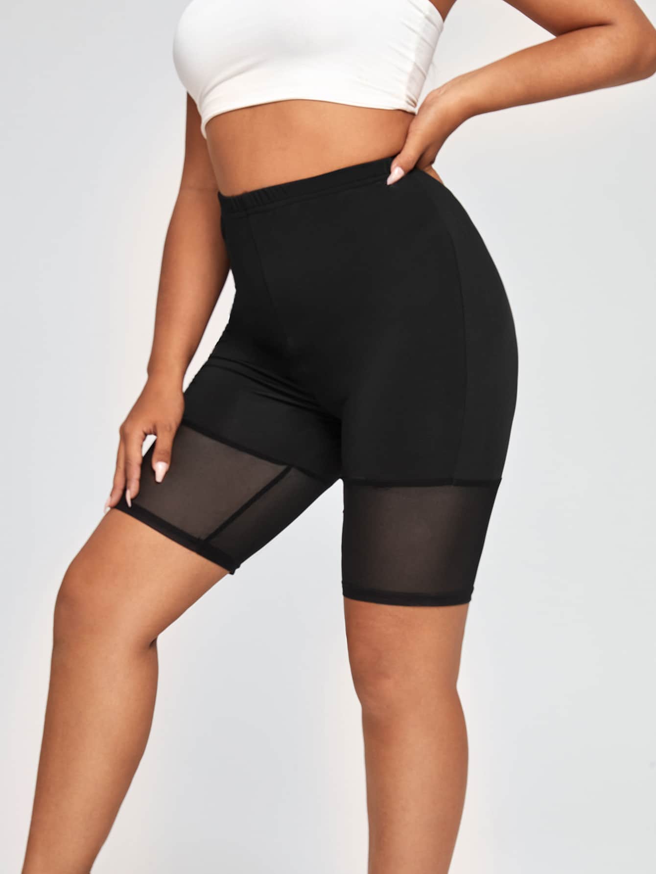 Plus Solid Contrast Mesh Biker Shorts