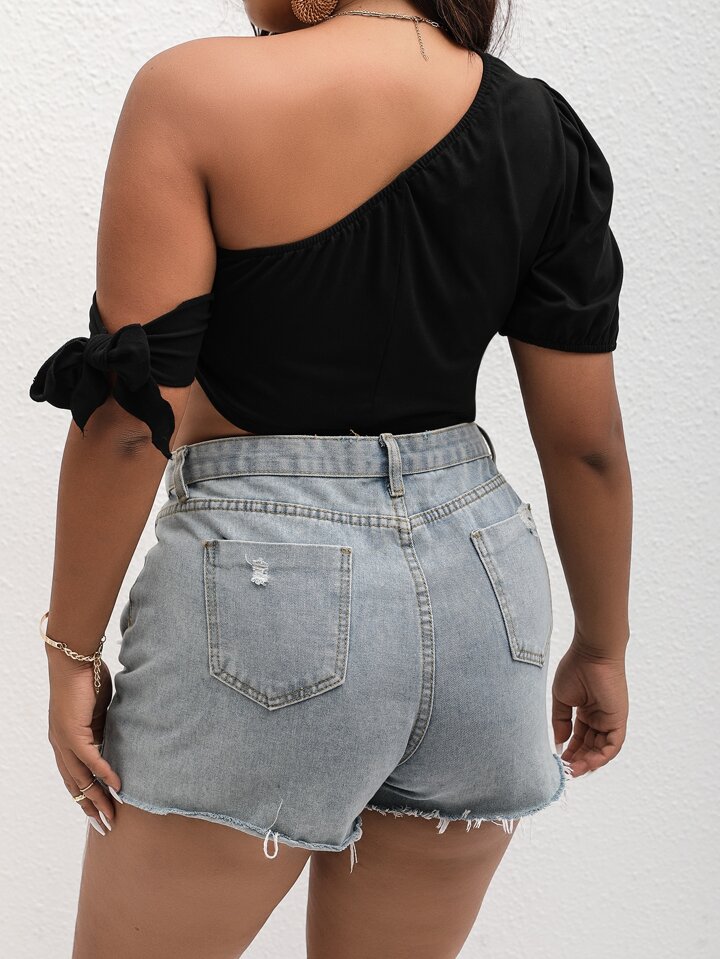 Plus Solid Knot Side One Shoulder Crop Top