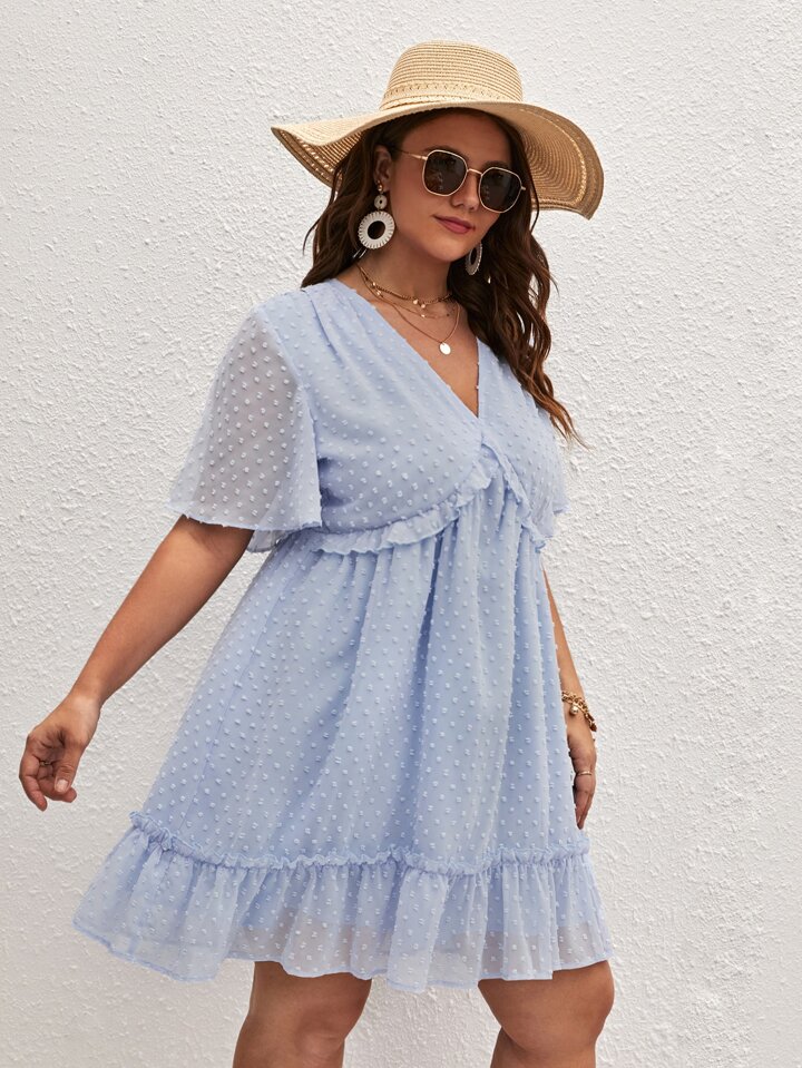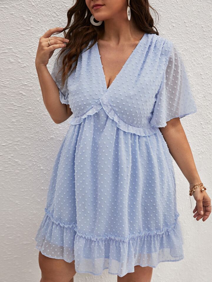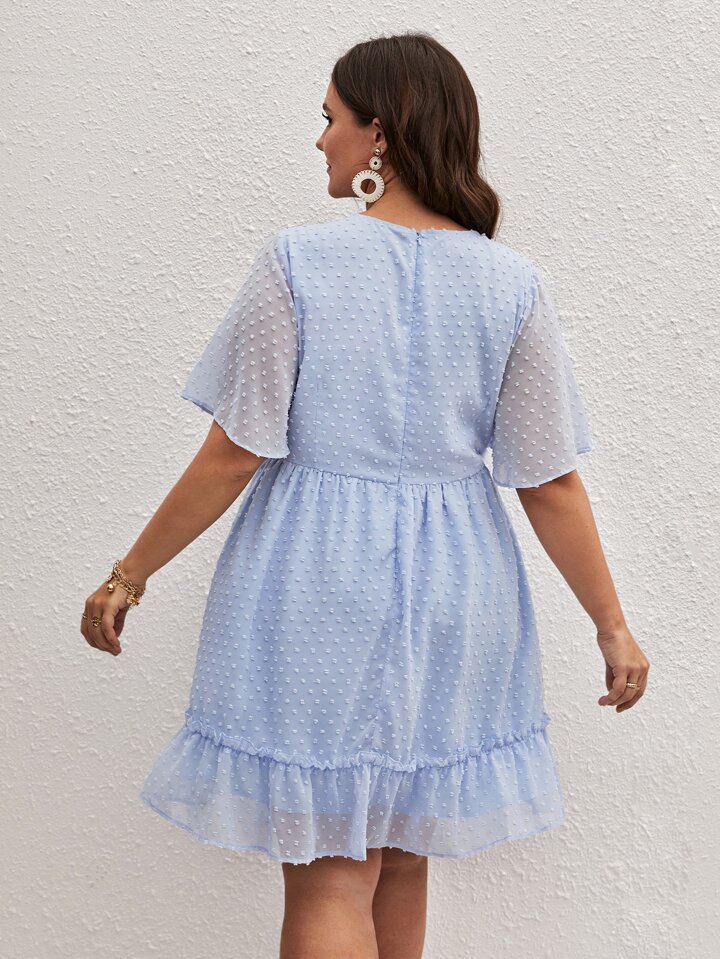 Plus Swiss Dot Ruffle Trim Chiffon Dress