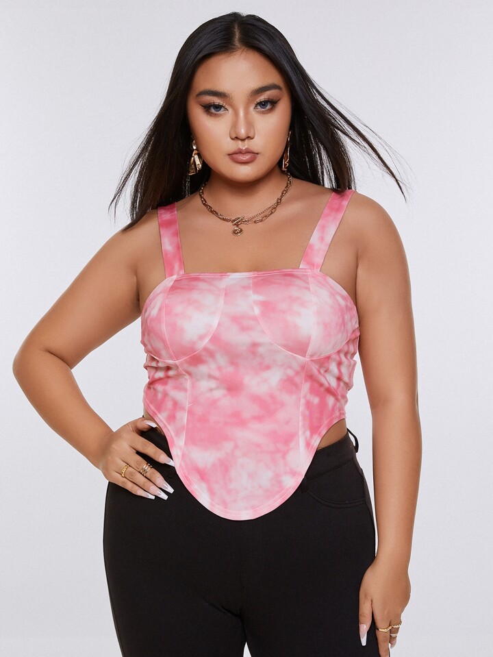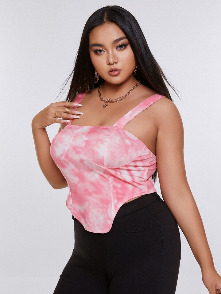 Plus Tie Dye Asymmetrical Hem Bustier Cami Top