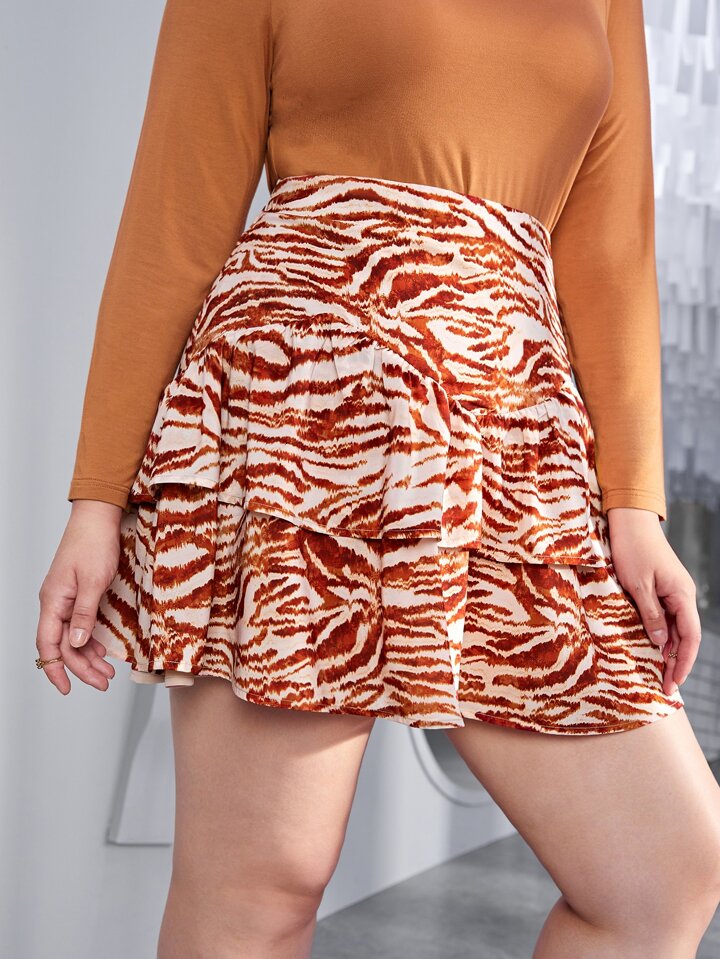 Plus Tiger Skin Print Two Layer Hem Skirt