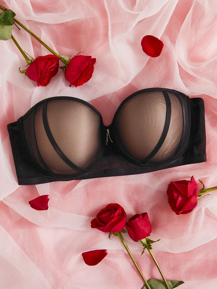 Plus Underwire Mesh Bra With 1pair Transparent Strap