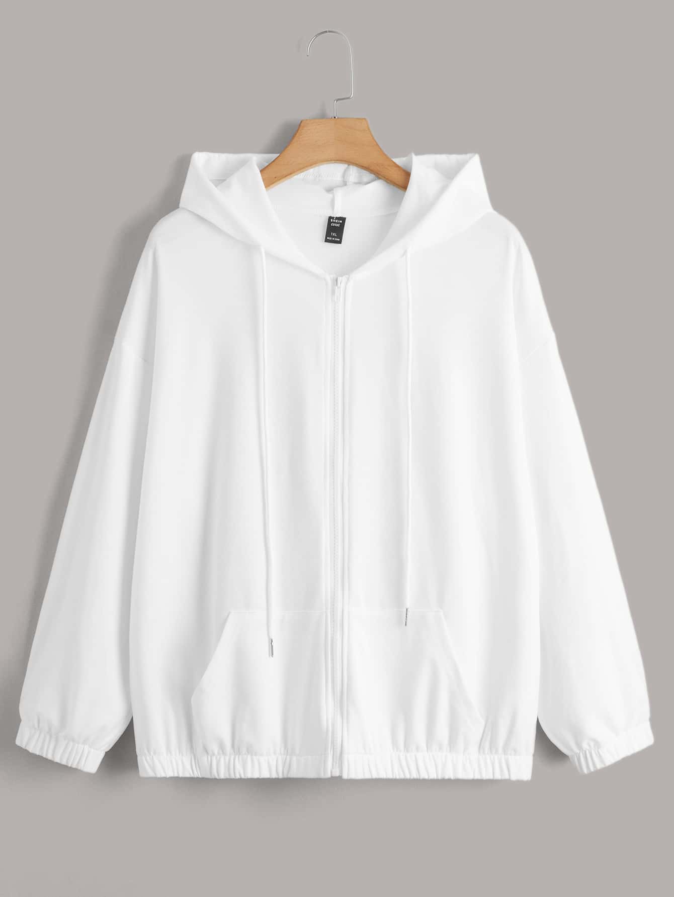 Plus Zip Up Kangaroo Pocket Drawstring Hoodie