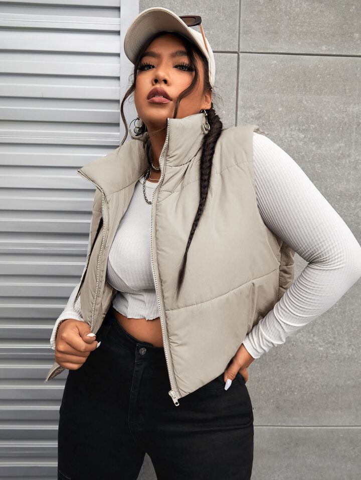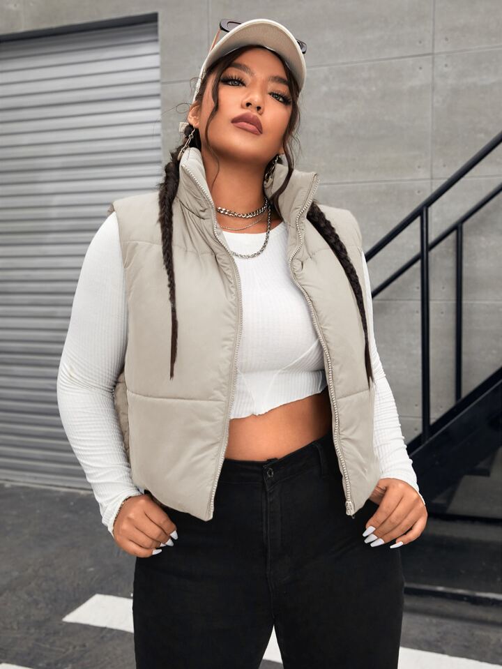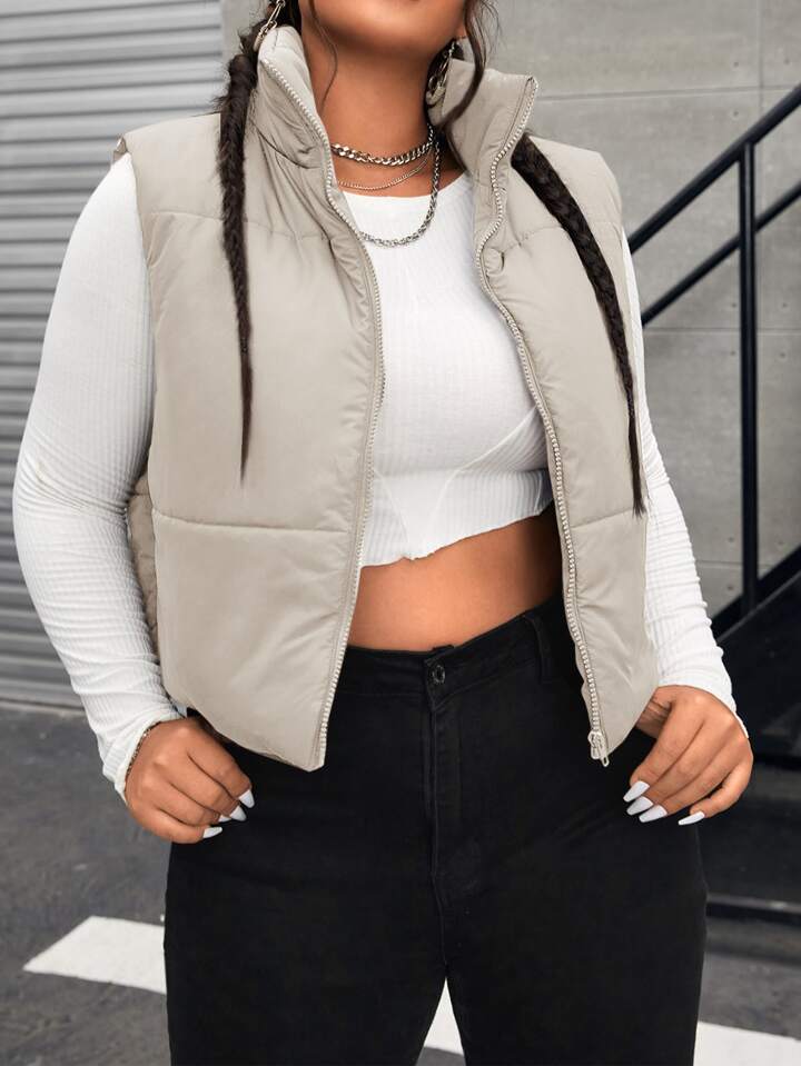 Plus Zip Up Vest Coat, For Winter Simple Fashion Daily Casual Fall Autumn