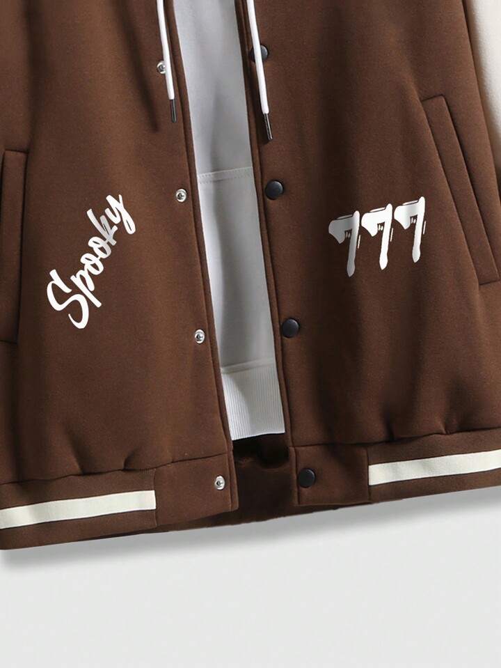Prep Guys Slogan Graphic Two Tone Varsity Jacket Without Hoodie