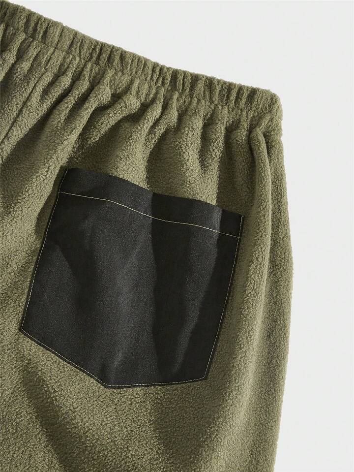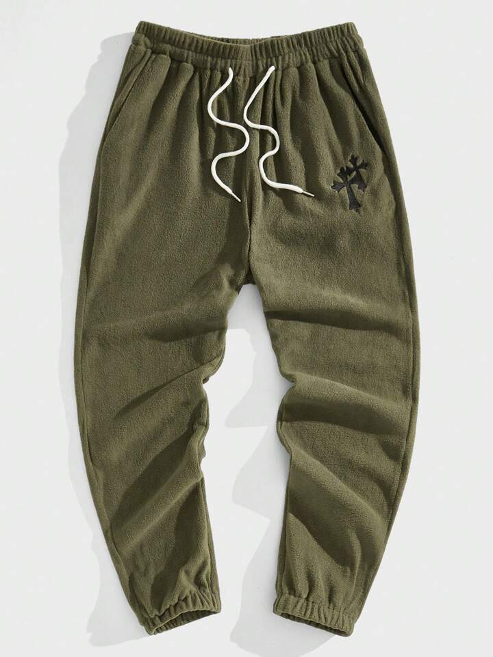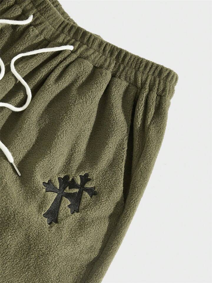 Prep Men Cross Embroidered Contrast Pocket Patched Fleece Pants