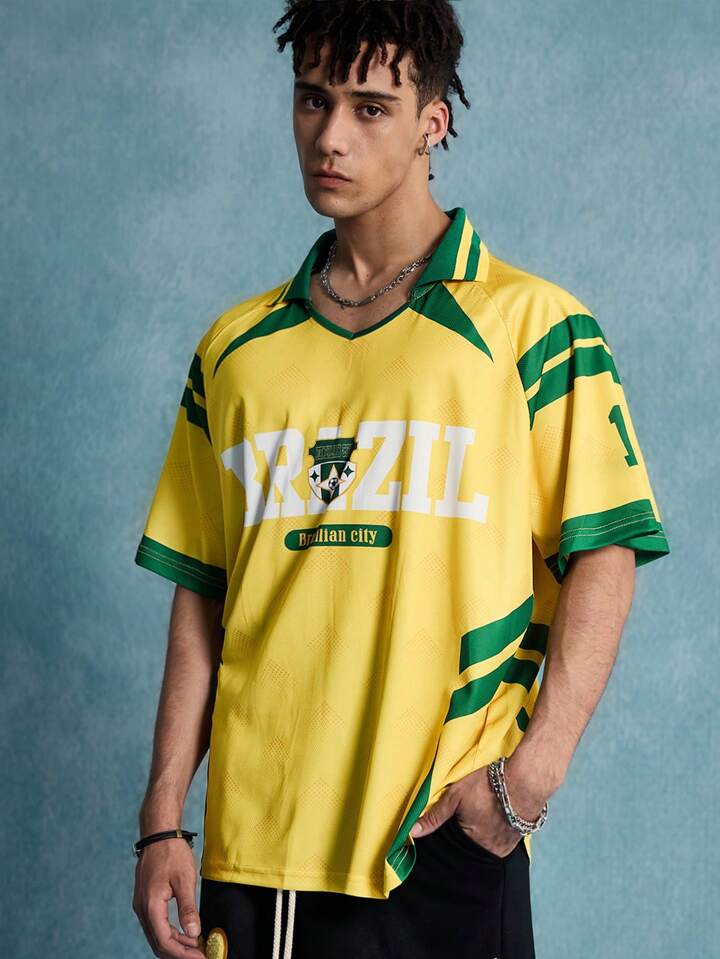 Prep Men Jersey Brazil Football Sports Polo Shirt