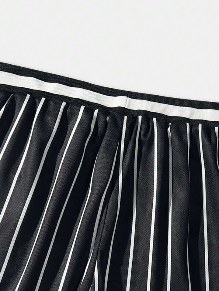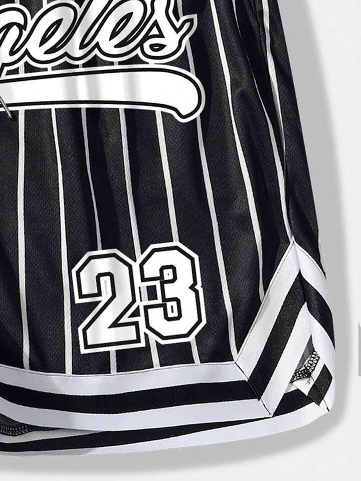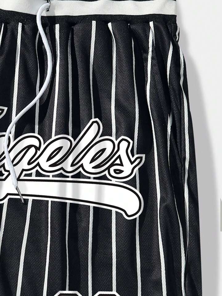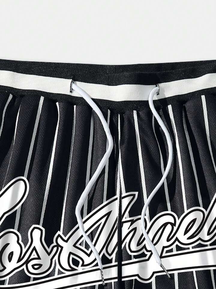 Prep Men Striped & Letter Graphic Drawstring Waist Mesh Basketball Shorts