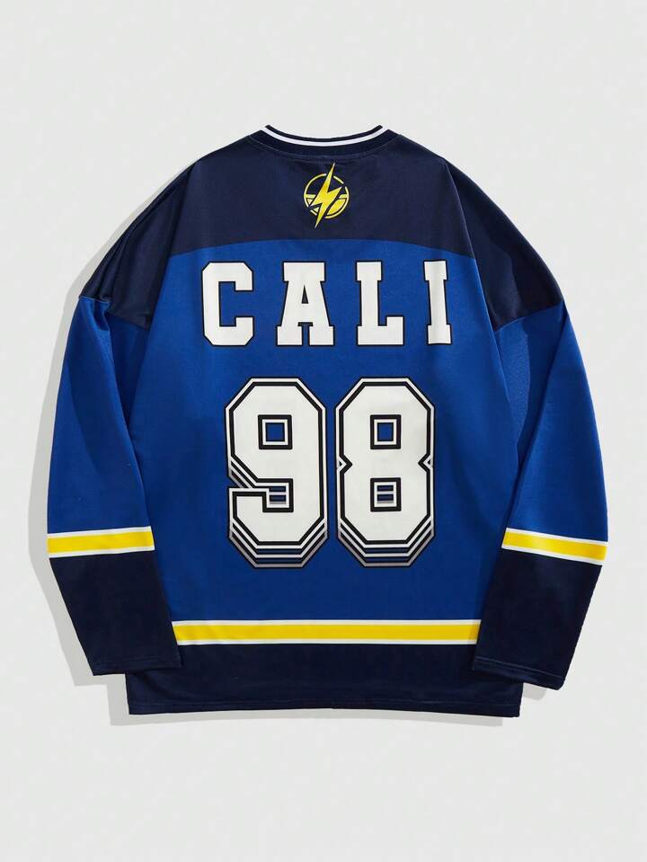 Prep Men's Autumn Letter & Slogan Print V-Neck Long Sleeve Sports T-Shirt