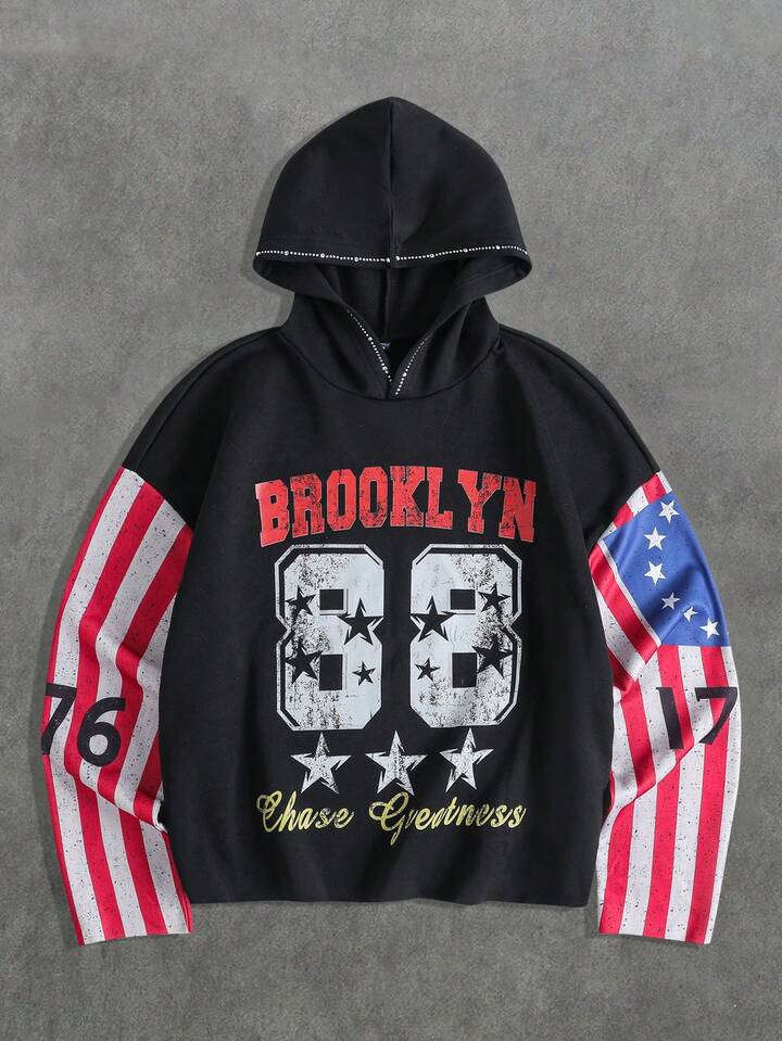 Prep Men's Casual Contrast Striped Patchwork Hoodie