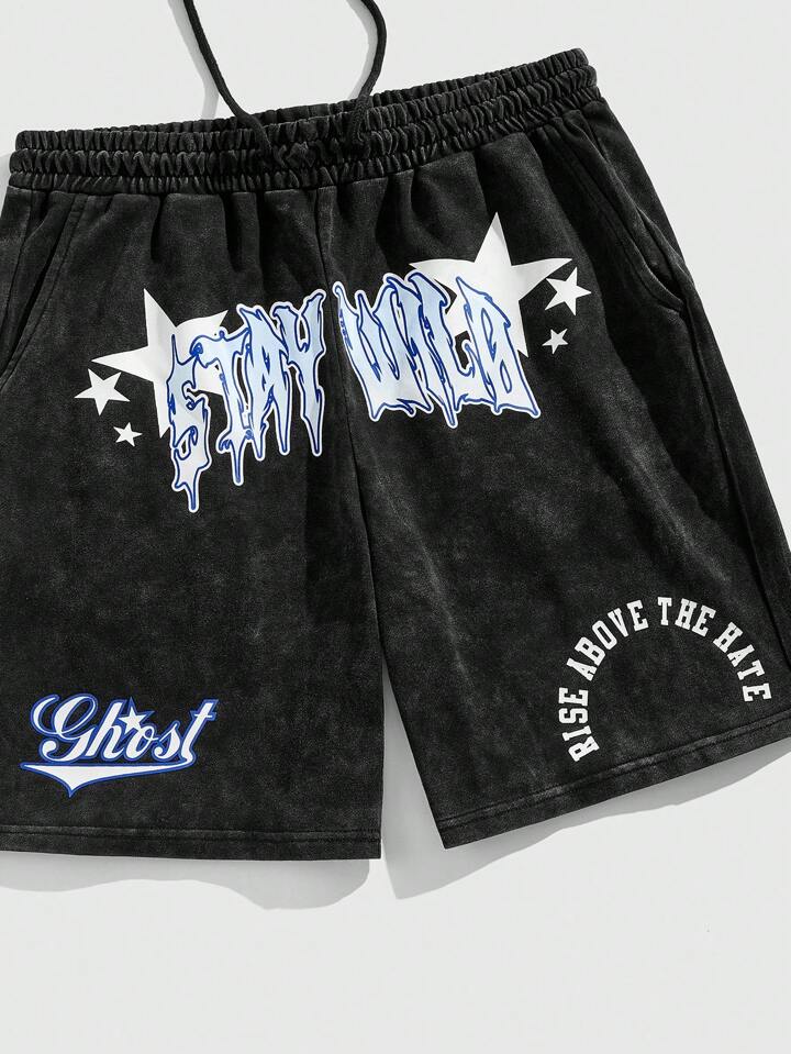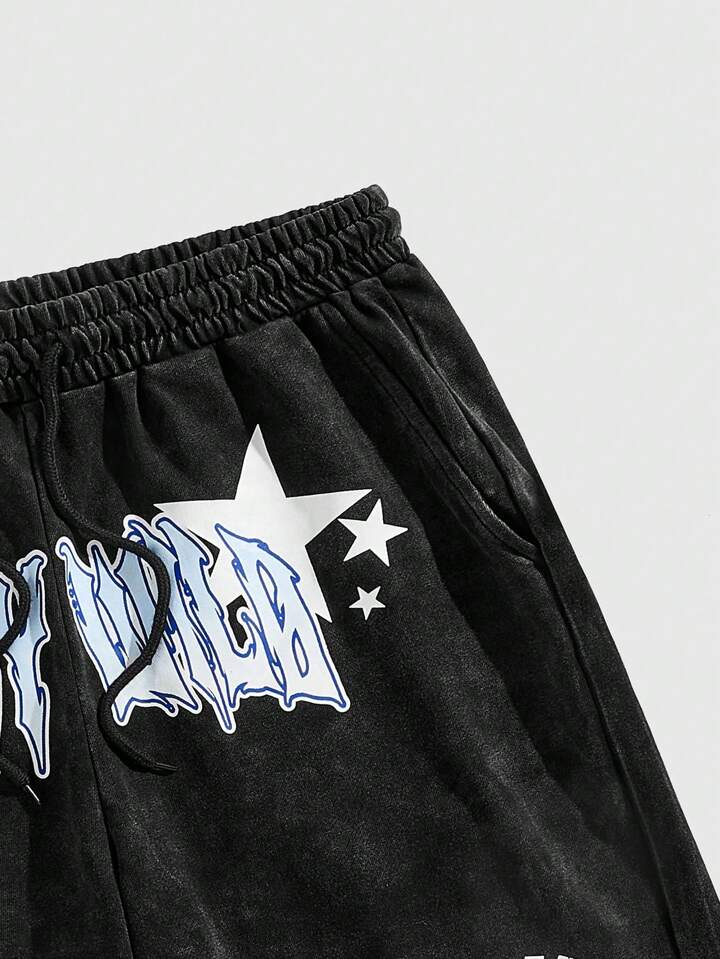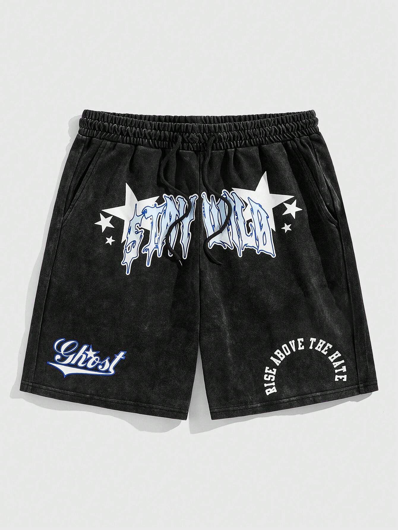 Prep Men's Casual Fit Drawstring Waist Letter & Five-Pointed Star Printed Casual Shorts, School