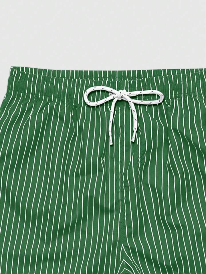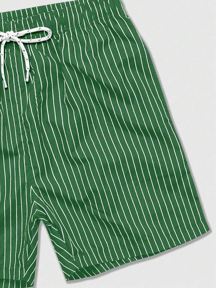 Prep Men's Casual Striped Print Drawstring Shorts, Suitable For Summer